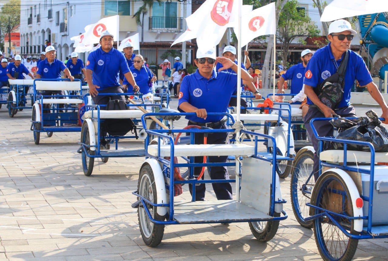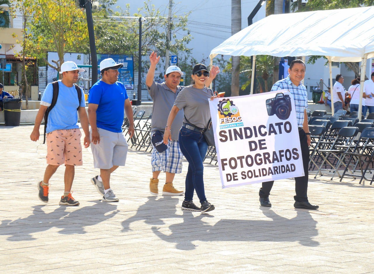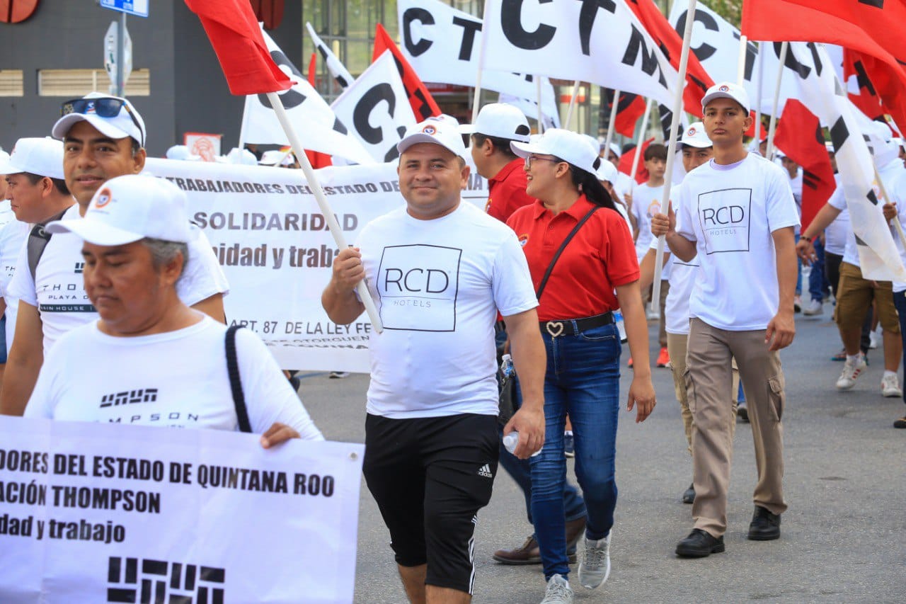 Playa del Carmen, Solidaridad a 1 de mayo del 2024.- 3 mil personas se congregaron en el desfile conmemorativo del 135 aniversario del “Día del Trabajo” en Solidaridad. Contó con la presencia de 20 contingentes representativos de diversos sectores de la sociedad, recordando a los mártires de Chicago, Río Blanco y la huelga de Cananea, por el abuso patronal.