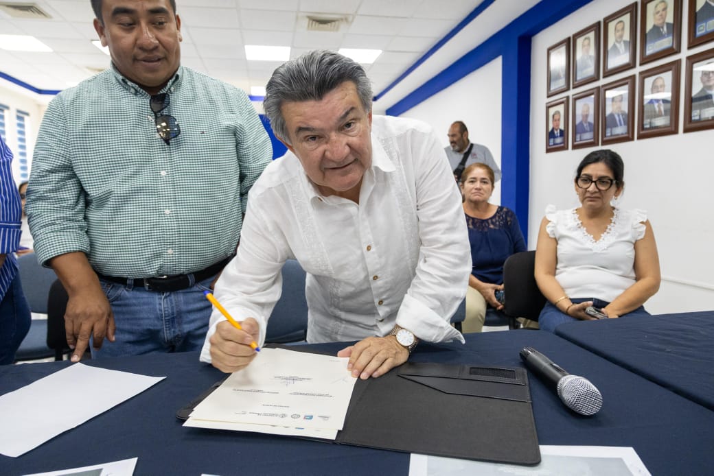 En la firma del documento estuvo el regidor Uri Carmona Islas, entre los testigos del trascendental evento.