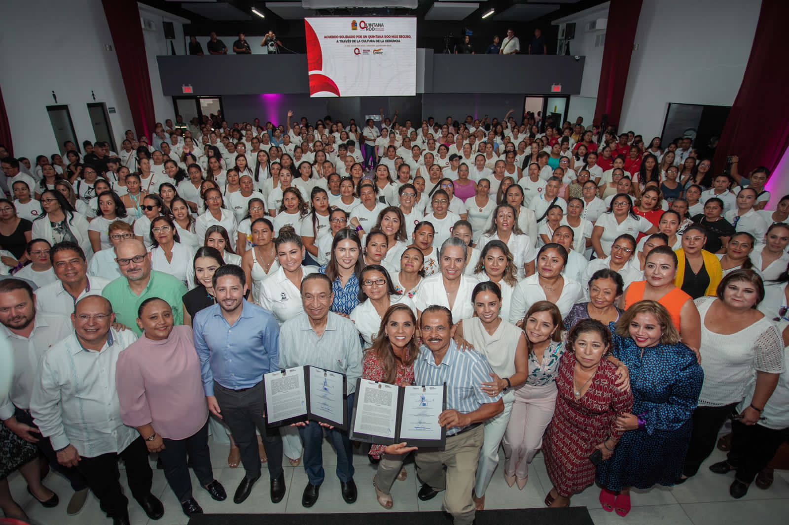 Cancún.- La gobernadora Mara Lezama Espinosa y el secretario nacional de la CROC Isaías González Cuevas firmaron un acuerdo solidario en materia de colaboración sindical para la construcción de Quintana Roo como destino 100% seguro, a través del fortalecimiento y promoción de la cultura de la denuncia y la participación ciudadana.