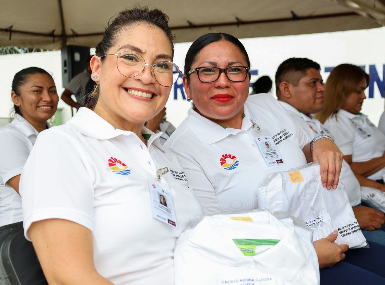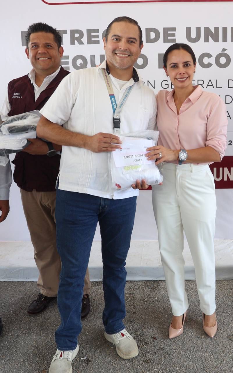 Posteriormente, la Primera Autoridad Municipal entregó también de forma simbólica una parte de los uniformes consistentes en playeras tipo polo, blusas y camisas de manga corta para 106 trabajadores, así como cuatro equipos de cómputo y discos duros para esas oficinas y la de la zona hotelera, con el fin de mejorar la imagen institucional al público.