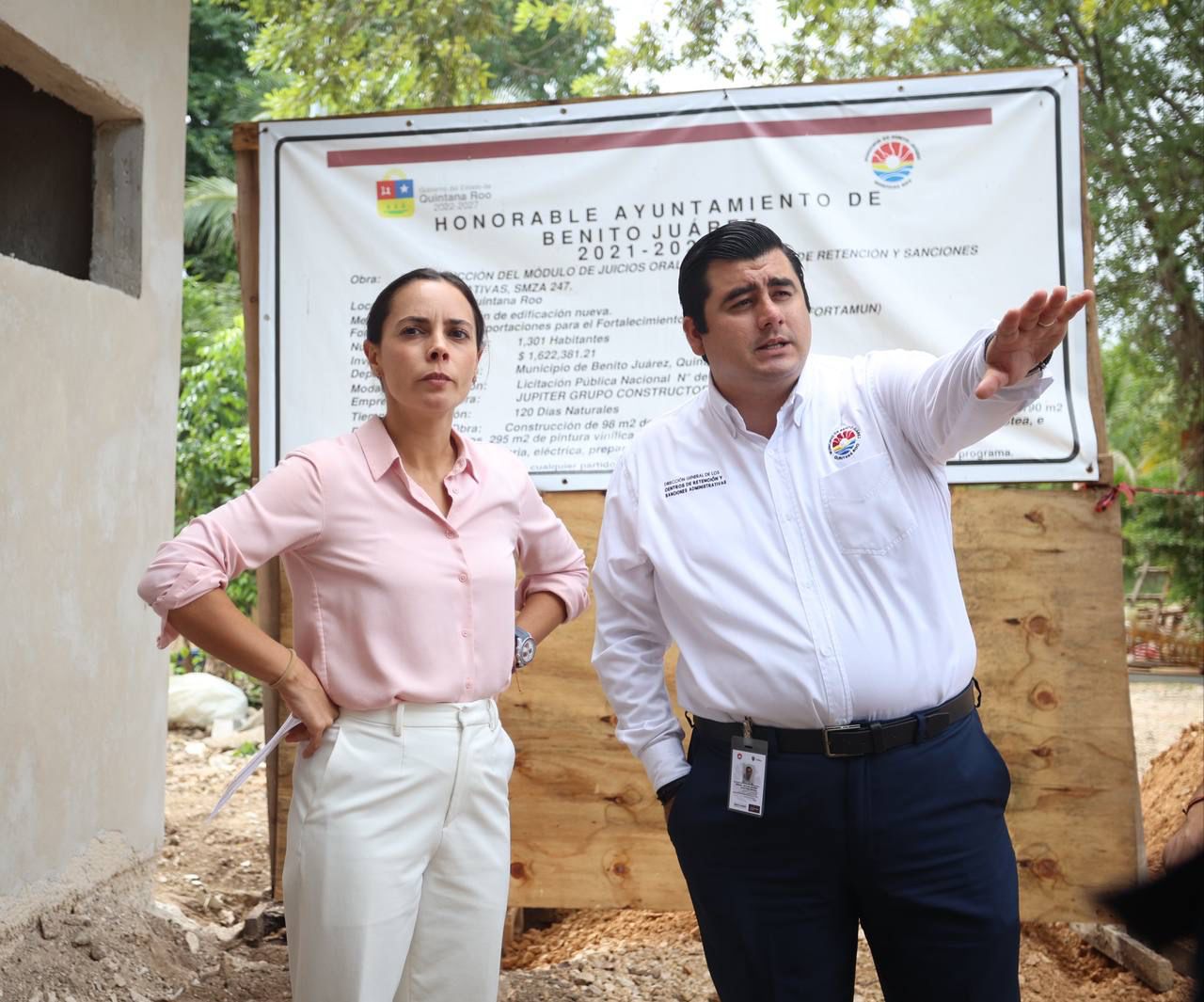 • Resalta el avance en la construcción de la sala de juicios orales en la Supermanzana 247
