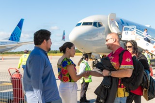 El vuelo fue recibido por la regidora María Fernanda Vargas y el subdirector de Turismo, José Elías Farah, quienes dieron una cálida recepción a los viajeros en el Aeropuerto Internacional de Cozumel. Ambos destacaron la importancia de esta conexión directa para impulsar el turismo de pernocta en la isla.