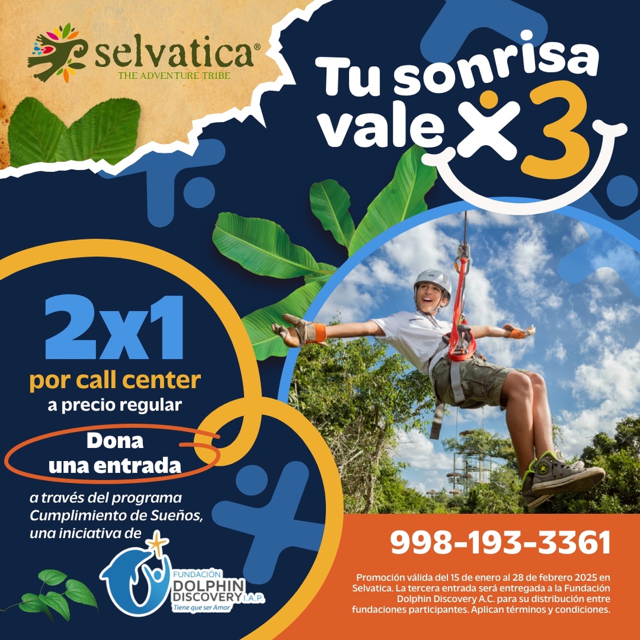 “Tu Sonrisa Vale X3” tiene como objetivo sensibilizar a los visitantes y ofrecerles la oportunidad de contribuir al bienestar de otros miembros de su comunidad. Al adquirir una promoción 2×1 a precio regular a través del call center del parque participante, The Dolphin Company y Fundación Dolphin Discovery I.A.P, destinarán una tercera entrada a personas seleccionadas de asociaciones civiles aliadas a través del programa “Cumplimiento de Sueños”. Entre los beneficiarios de esta acción se encuentran niños de casas hogar, adultos mayores y personas con discapacidad, quienes podrán disfrutar de momentos inolvidables en los parques de The Dolphin Company.