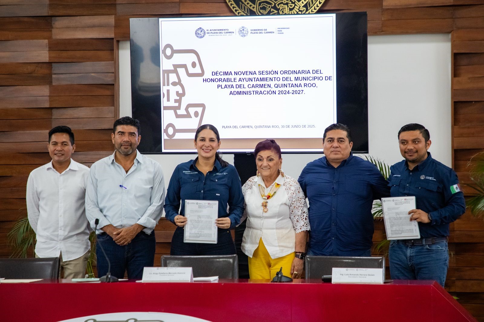 Playa del Carmen, Quintana Roo, 30 de junio de 2025.— En el marco de la Décima Novena Sesión Ordinaria del Honorable Ayuntamiento de Playa del Carmen, administración 2024–2027, encabezada por la presidenta municipal Estefanía Mercado, el Cabildo aprobó, por unanimidad, la iniciativa de decreto para declarar la fiesta patronal dedicada a la Virgen del Carmen como Patrimonio Cultural Intangible del Estado de Quintana Roo.