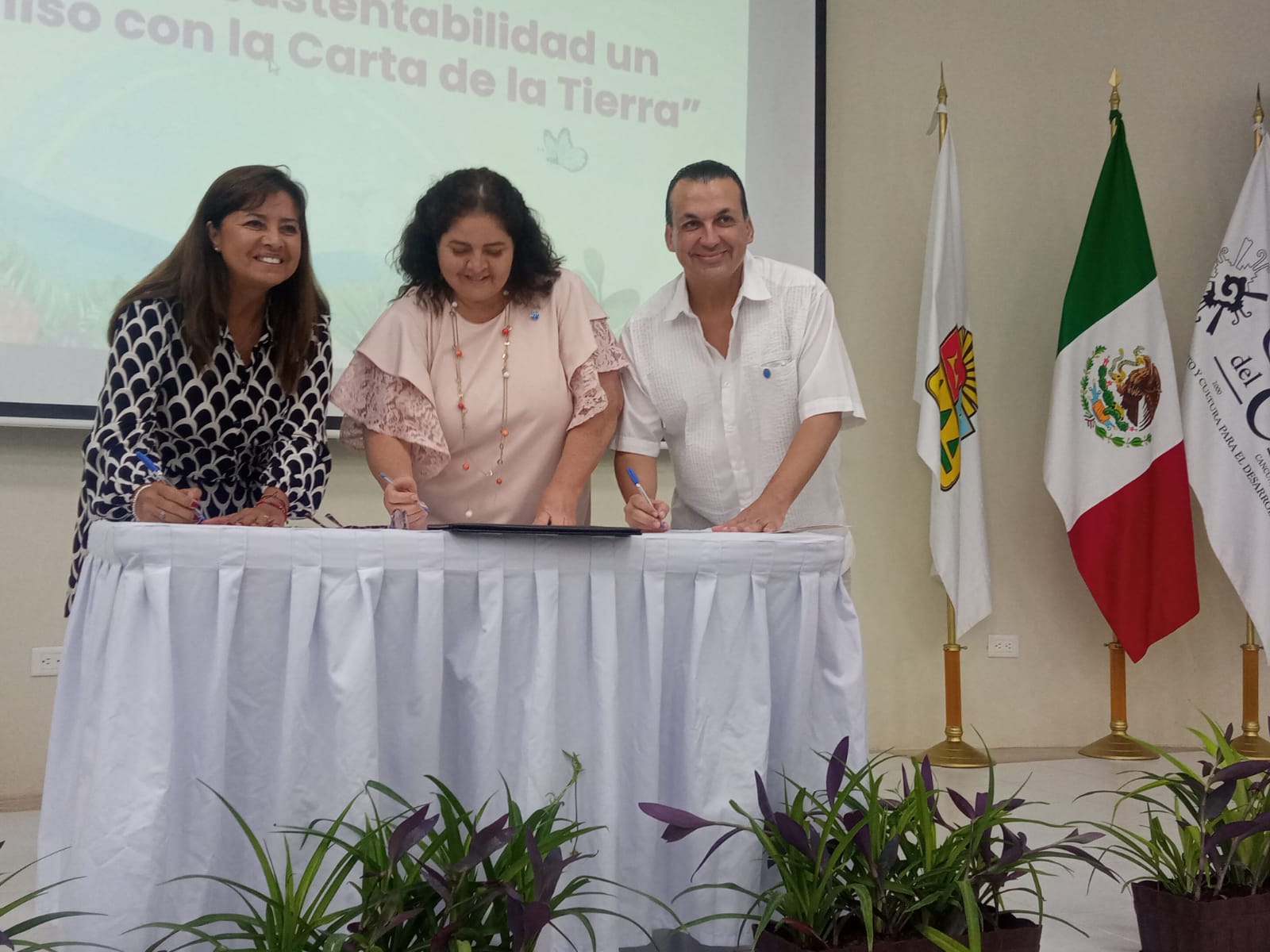 El acuerdo estaría firmado por la Dra. Mirian Vilela, directora ejecutiva de la Iniciativa Internacional de la Carta de la Tierra; el responsable en México de la Iniciativa Internacional de la Carta de la Tierra, Dr. Mateo Castillo Ceja; la diputada Andrea del Rosario González Loria, presidenta de la Comisión de Medio Ambiente y Cambio Climático de la Congreso del Estado de Quintana Roo.