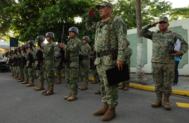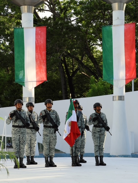 Antes de efectuar el acto, en la plaza cívica situada frente al Palacio de Gobierno elementos de la 34 Zona Militar, izaron a media asta la Bandera Nacional Mexicana.