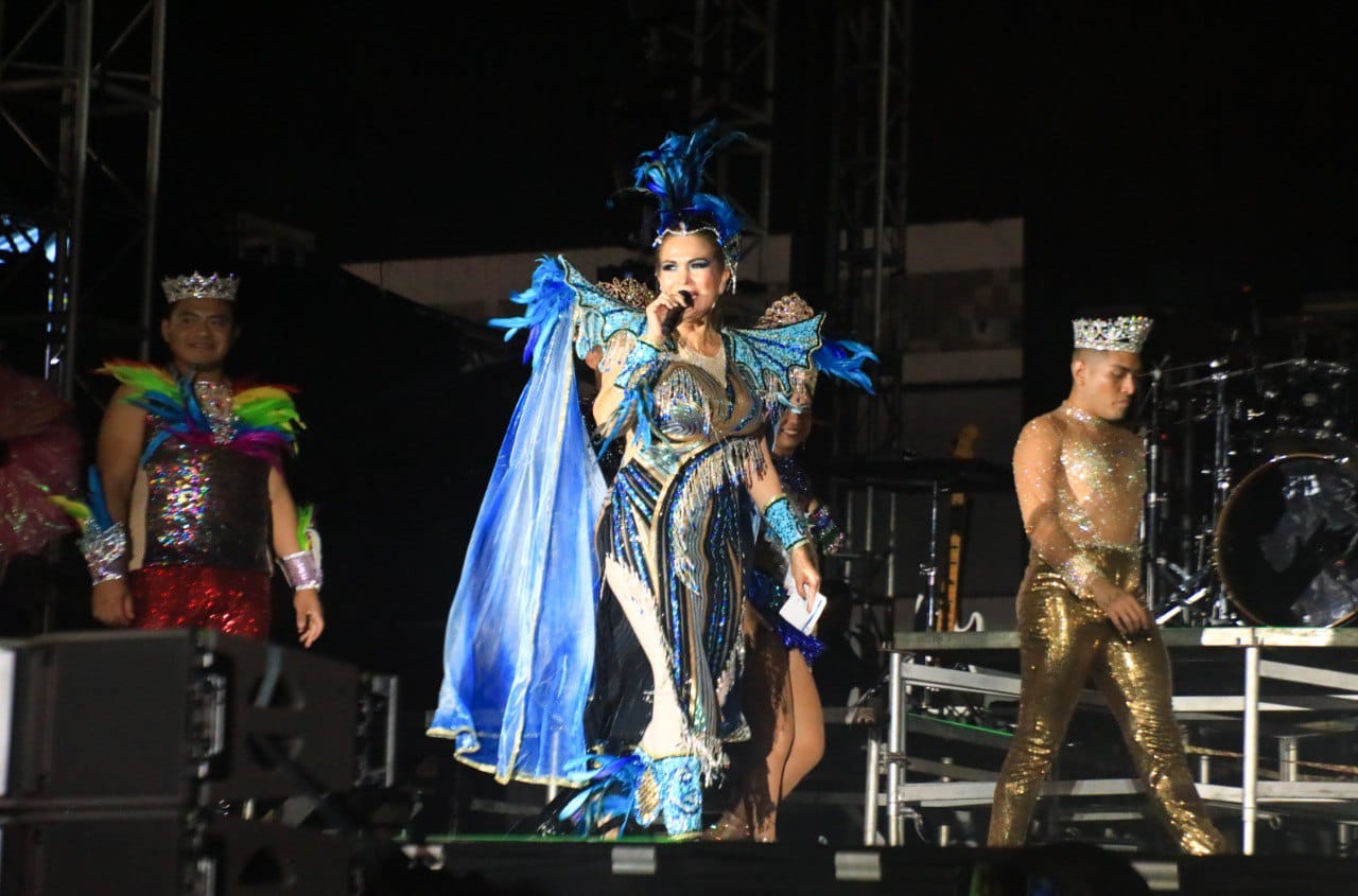 Lili Campos acompañó a los reyes y reinas soberanos electos, sus comparsas y carros alegóricos, al concluir, se reunieron en la plaza cívica 28 de Julio, donde las miles de personas reunidas disfrutaron la presentación del cantante “Sebastián Yatra”, puso a cantar y bailar a todo el público asistente con “Tacones Rojos”, “Traicionera”, “Como Mirate”, “Pareja del Año” entre otros éxitos.