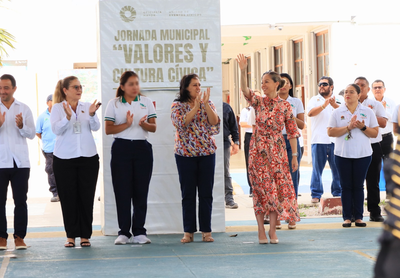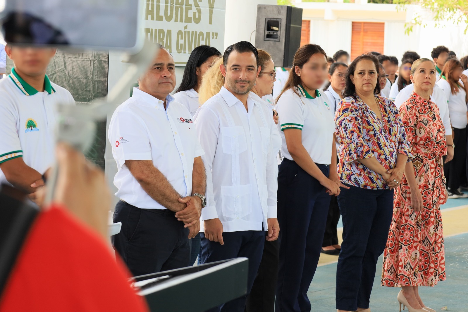 • El Encargado de Despacho de la Presidencia Municipal de Benito Juárez expresó que la actividad semanal de valores y cultura cívica, con la que cada lunes se visitan diferentes planteles, sirve para fomentar el orgullo de ser quintanarroenses y mexicanos.