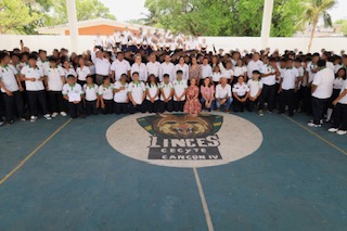 • La directora general del CECYTEQROO, Silvia Isabel Mendoza García, indicó que en México actualmente se avanza con las armas del conocimiento y gracias a la sinergia entre la comunidad escolar y autoridades, se construye una educación de calidad, por lo que invitó a los estudiantes a la institución y externar todas sus inquietudes a través de un buzón de sugerencias que permanece abierto para ellos.