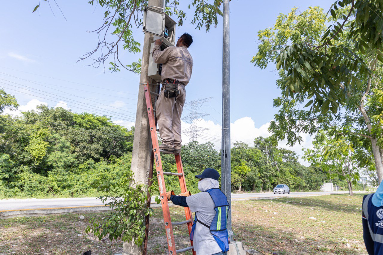 Por parte de la Secretaría de Servicios Públicos Municipales se brinda el mantenimiento normal a las lámparas instaladas cerca del filtro en dirección a Puerto Morelos, a fin de tenerlas en óptimas condiciones, reduciendo áreas oscuras.