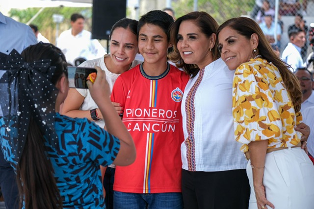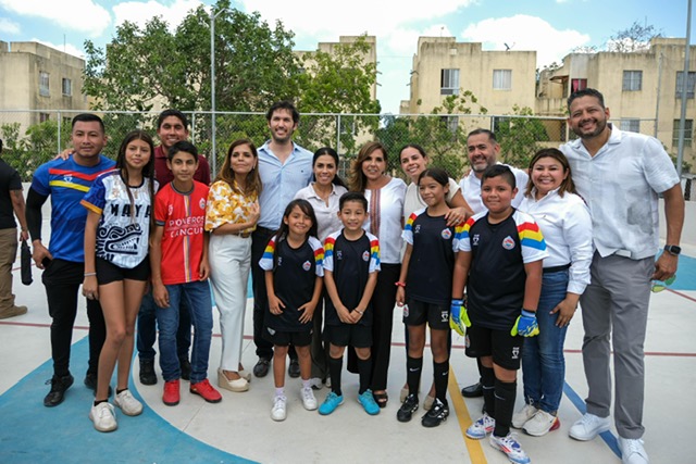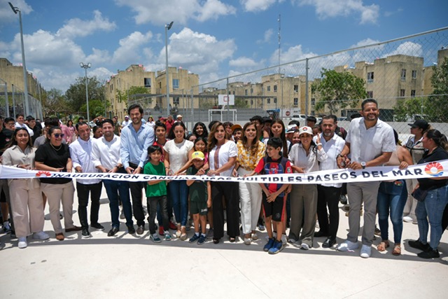 Cancún.- Al inaugurar las canchas de usos múltiples del fraccionamiento Paseos del Mar, en la supermanzana 251 de Cancún, la gobernadora Mara Lezama Espinosa expresó su satisfacción y afirmó que cada vez que se abre un espacio deportivo se cierra la puerta a la inseguridad y a la violencia. “Cuando inauguramos una cancha hacemos comunidad, ganamos cohesión, ganamos paz”, dijo.