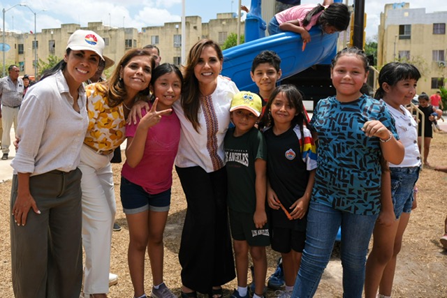 A su arribo y antes de cortar el listón inaugural, Mara Lezama saludó a niñas y niños, platicó con ellos y observó cómo se divertían en los juegos infantiles. La gobernadora dio la patada inaugural en las canchas de usos múltiples.