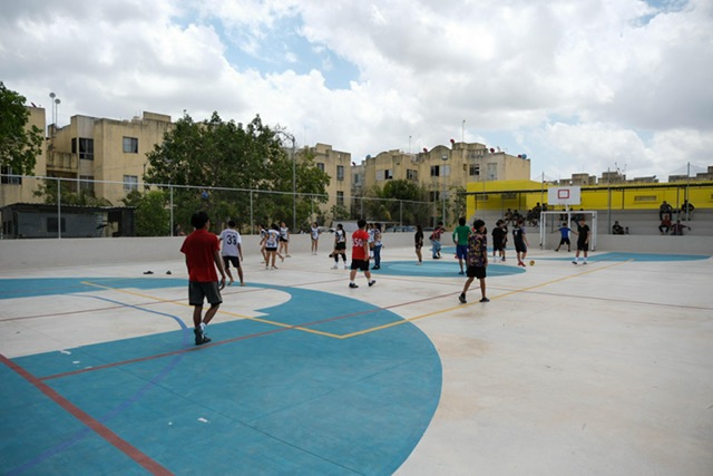 Son dos canchas multiusos donde más de 6 mil personas de la zona pueden realizar actividades como fútbol, basquetbol, así como organizar eventos dentro de las mismas canchas. Cuenta con gradas techadas y a la entrada por la Av. Obsidiana, un área de juegos infantiles. “Nuestras niñas, niños y jóvenes tendrán una alternativa real, un espacio digno para desarrollarse lejos de los flagelos de las conductas autodestructivas” expresó Mara Lezama.