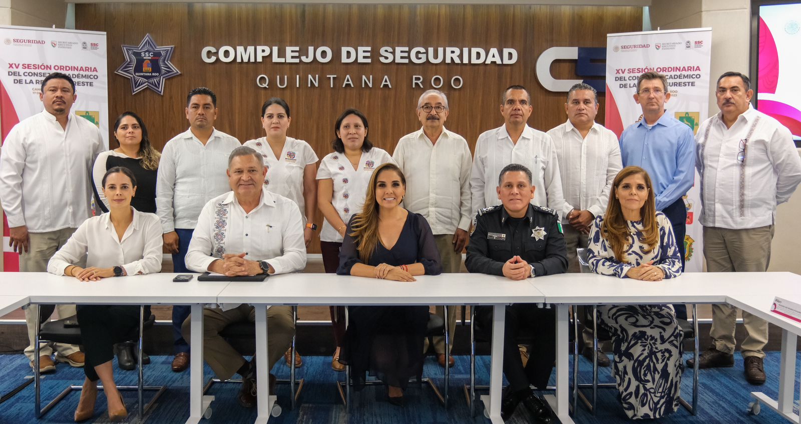 Cancún.- Al inaugurar la XV Sesión Ordinaria del Consejo Académico de Formación Policial de la Región Sureste, que reúne a directivos y funcionarios de las instituciones de Campeche, Chiapas, Oaxaca, Tabasco, Veracruz, Yucatán y Quintana Roo, la gobernadora Mara Lezama Espinosa destacó las acciones que se realizan en la entidad para la construcción de la paz.