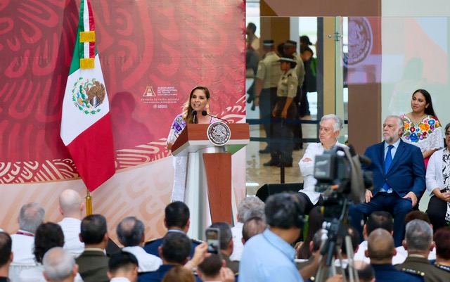 Ante el Presidente de México, integrantes del gabinete del Gobierno Federal, embajadores de Portugal, de Francia, de Estados Unidos y de Cuba, gobernadores, presidentes municipales y dignatarios mayas, la titular del Ejecutivo también precisó que las estaciones Tulum Aeropuerto y Felipe Carrillo Puerto del Tren Maya, permitirá que los visitantes puedan conocer el sur del estado, Bacalar con su laguna de los 7 colores, el cenote azul, el fuerte de San Felipe y el Museo de la Piratería.
