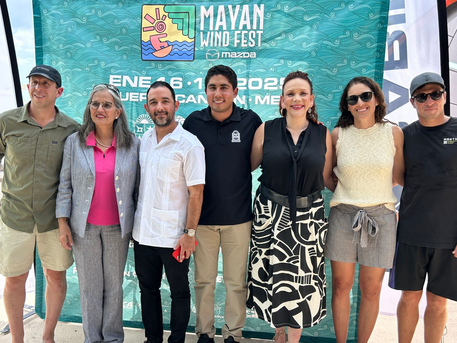 En el podio estuvieron presentes el presidente de la Comisión del Deporte de Quintana Roo, Jacobo Arzate Hop; la Directora Deportiva de Mayan Wind Fest 2025, Ana Paula Rión; de Sabino Producciones, Ernesto Rivas Butcher; el vicepresidente de World Sailing, Beatriz Gonzáles Luna y de Puerto Cancún, Javier Barros, quienes dieron la bienvenida a los participantes.