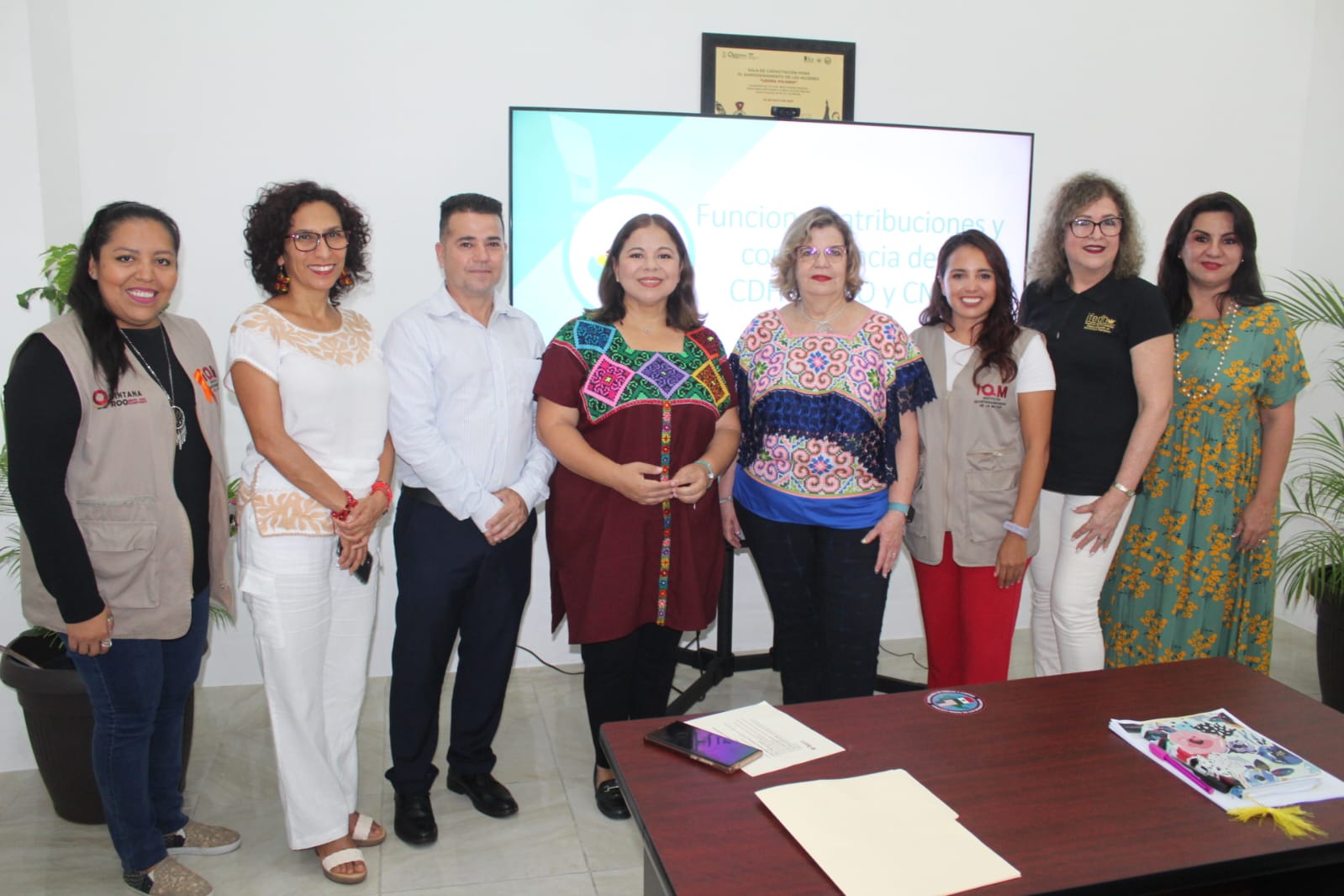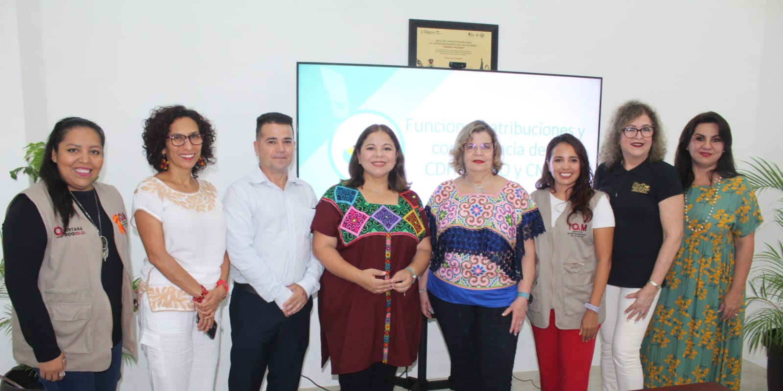 En el acto protocolario de clausura del taller también estuvieron presentes el encargado de titularidad de la CDHEQROO, Felipe Nieto Bastida; la encargada de la Coordinación General del Instituto de Formación Especializada en Derechos Humanos de la CDHEQROO Rebeca Herreros Tapia y directora general para la Promoción de una Vida Libre de Violencia e Impulso a la Participación Política del INMUJERES, Anabel López Sánchez.