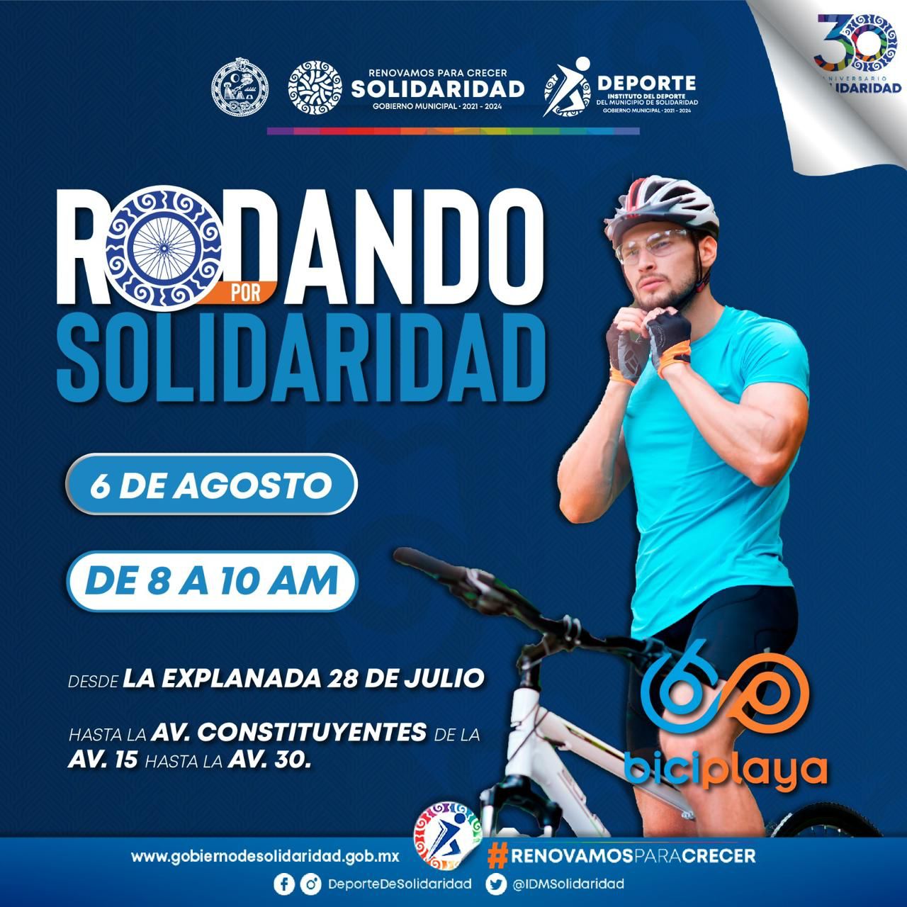 Playa del Carmen, Solidaridad, 4 de agosto del 2023.- Como parte de las acciones que fomentan la actividad física, la sana convivencia en un espacio seguro para ciclistas, patinadores, skiteboards y peatones, el gobierno dirigido por Lili Campos, a través del Instituto Municipal del Deporte, invita a participar en “Rodando por Solidaridad” el próximo domingo 6 de agosto, por la mañana.