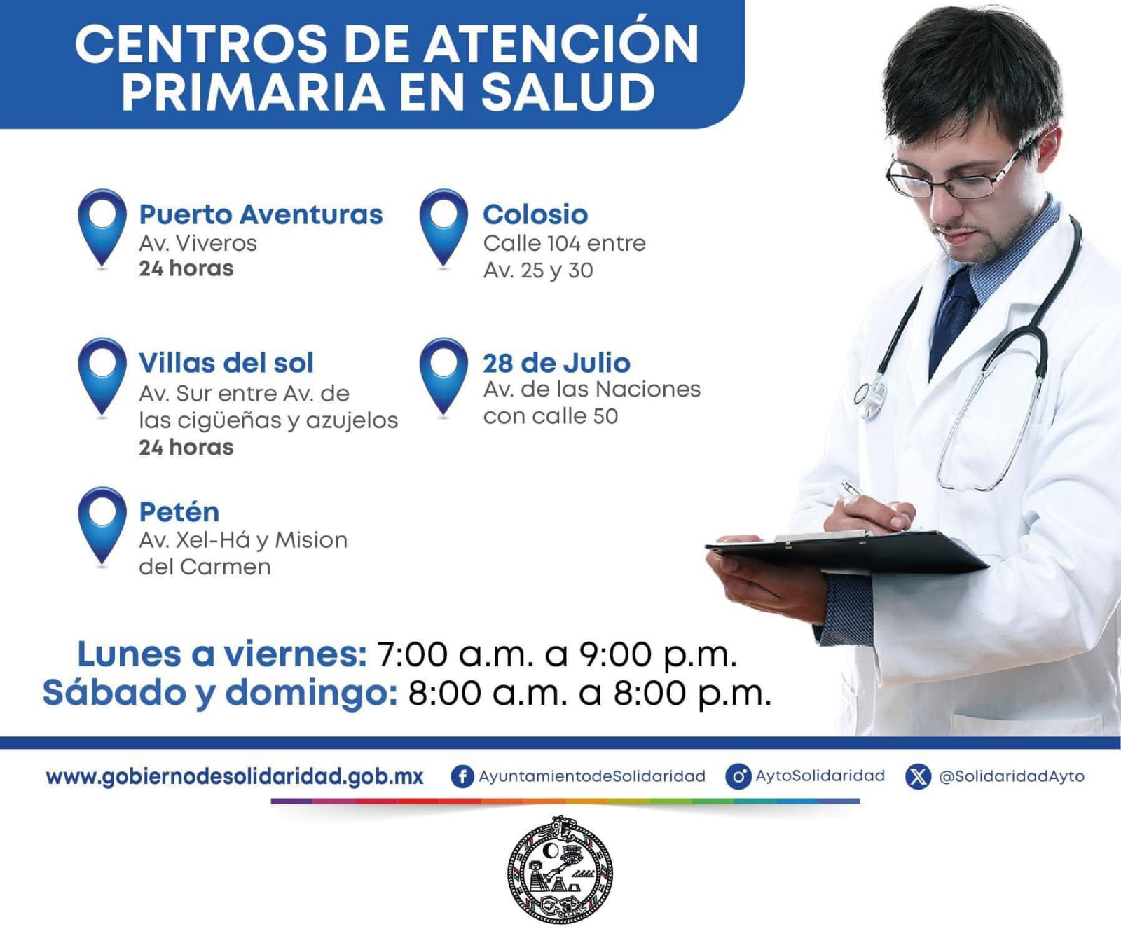 Ante cualquiera de los síntomas mencionados, puede acudir a los cinco Centros de Atención Primaria (CAPS) que hay en el municipio como, El Petén, 28 de Julio, Colosio, Villas del Sol y la alcaldía de Puerto Aventuras para recibir la atención médica que requieran.