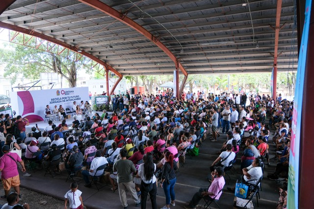Ante las y los asistentes a este programa, reunidos en el domo de la región 247, fraccionamiento Villas Otoch Paraíso, de Benito Juárez, exhortó a todas y todos a fortalecer la cultura del reciclaje, a ser parte importante en el cuidado de la Tierra, a hacer conciencia.