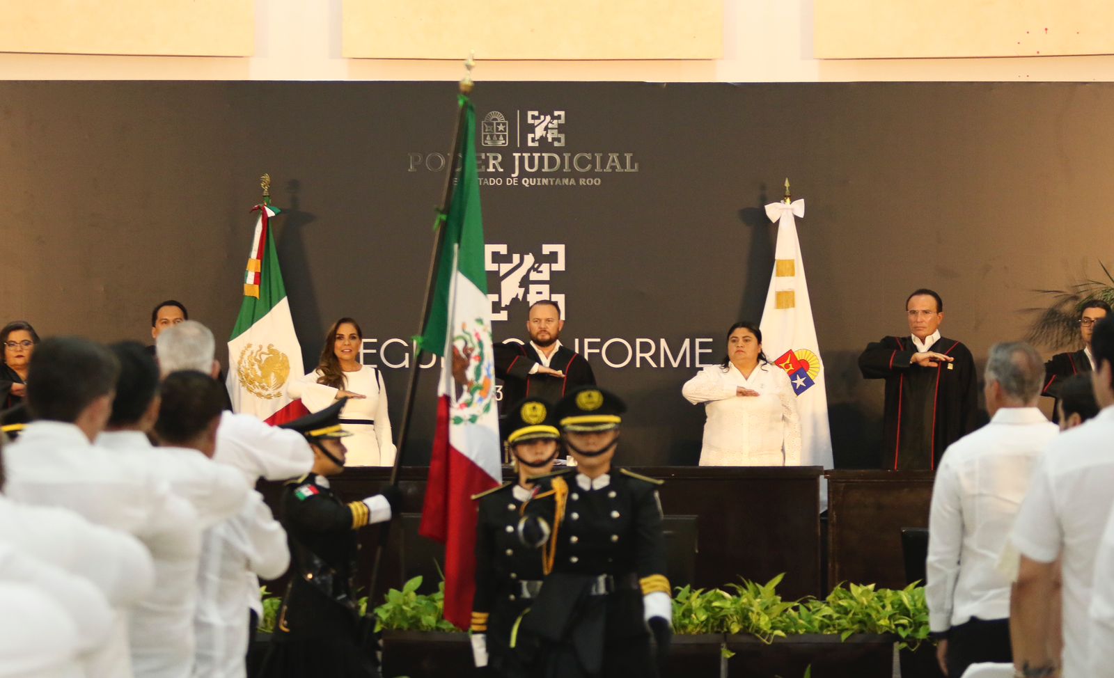 También el Magistrado Presidente del Poder Judicial de Ciudad de México y presidente de la Conatrib, Rafael Guerra Álvarez; el Magistrado Presidente de Jalisco, Daniel Espinosa Licón; Magistrado Presidente del Poder Judicial de Colima, Juan Carlos Montes y Montes; Magistrada Presidenta de Yucatán, María Carolina Silvestre Canto Valdéz; y el Magistrado Presidente del Poder Judicial de Tamaulipas, David Cerda Zúñiga.