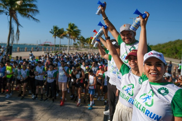Acompañada de la presidenta municipal de Benito Juárez, Ana Paty Peralta de la Peña, la Gobernadora dio el banderazo de salida en el Malecón Tajamar. Para participar, los atletas se inscribieron con una bolsa llena de residuos reciclables como PET, HDPE, latas de aluminio, papel archivo o cartón.