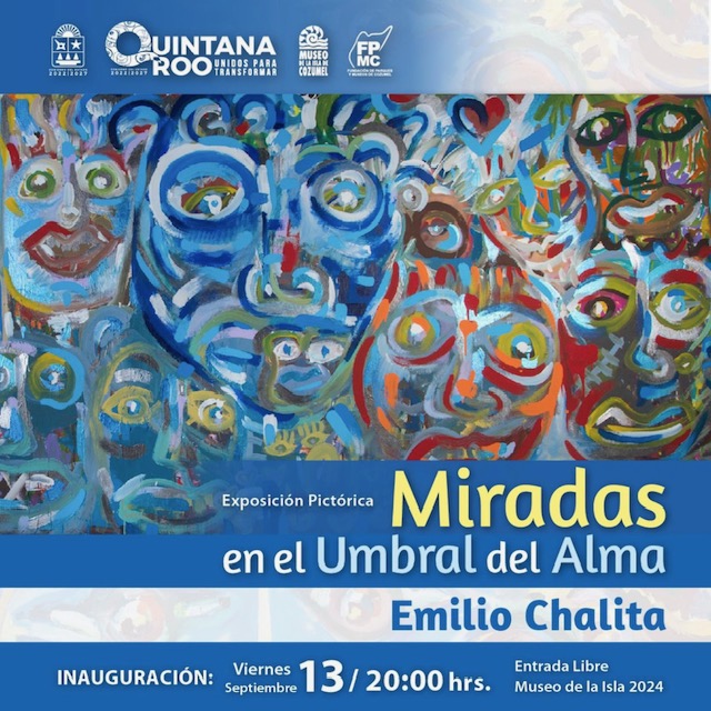 Cozumel.- La Fundación de Parques y Museos de Cozumel (FPMC) invita al público en general a la inauguración de la exposición pictórica “Miradas en el Umbral del Alma”, del artista multidisciplinario Emilio Chalita Aceves, que se llevará a cabo el próximo viernes en el Museo de la Isla.