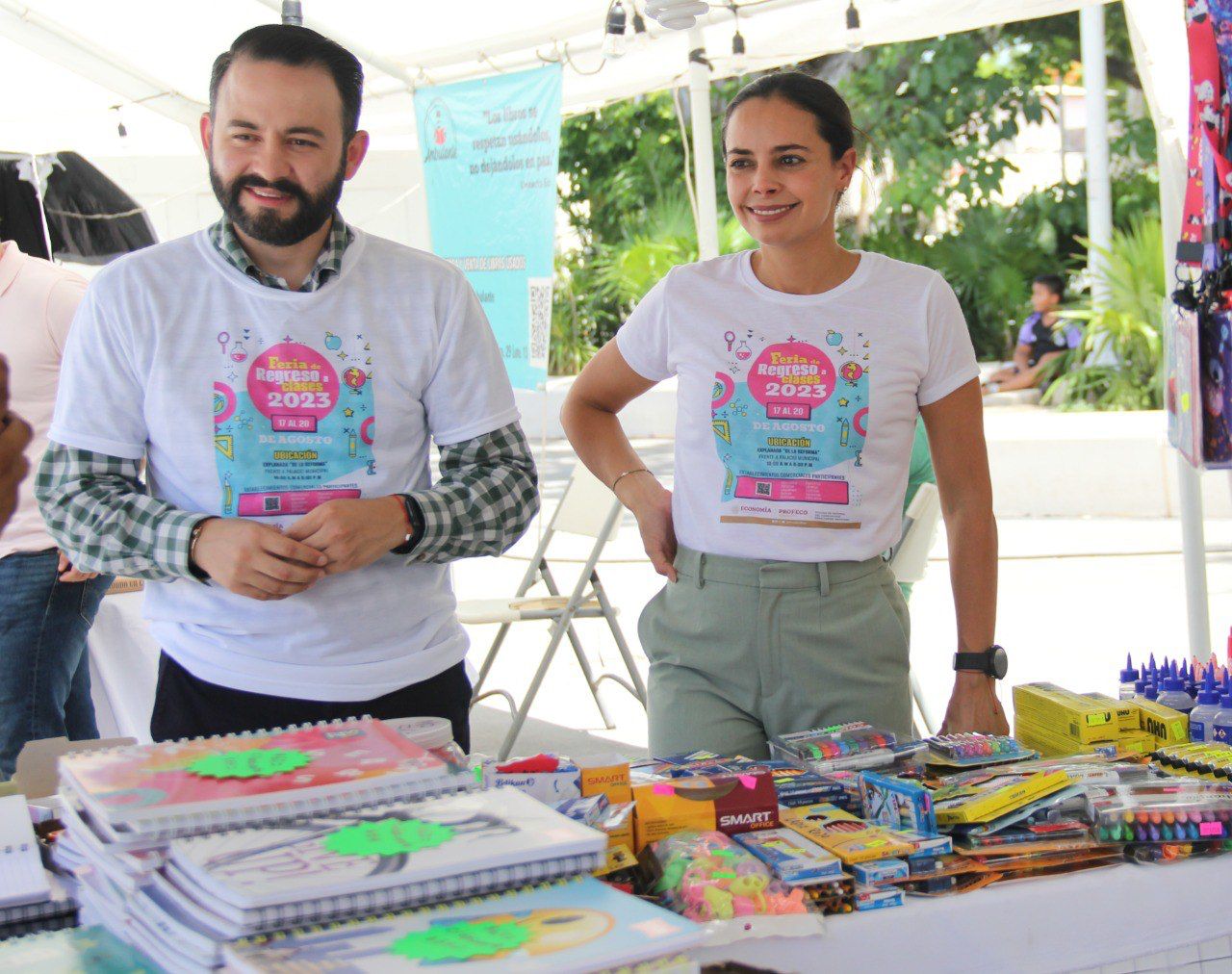 Cancún Q. R., a 19 de agosto de 2023.- El Ayuntamiento de Benito Juárez respalda la economía familiar al facilitar la realización de la “Feria de Regreso a Clases” de la Procuraduría Federal del Consumidor (Profeco) que año con año acerca proveedores y artículos escolares a los padres de familia, para que cuenten con lo necesario para sus pequeños, lo que se verá fortalecido con los más de 129 mil paquetes de suministros que entregará la Presidenta Municipal, Ana Paty Peralta, en este próximo ciclo escolar 2023-2024.