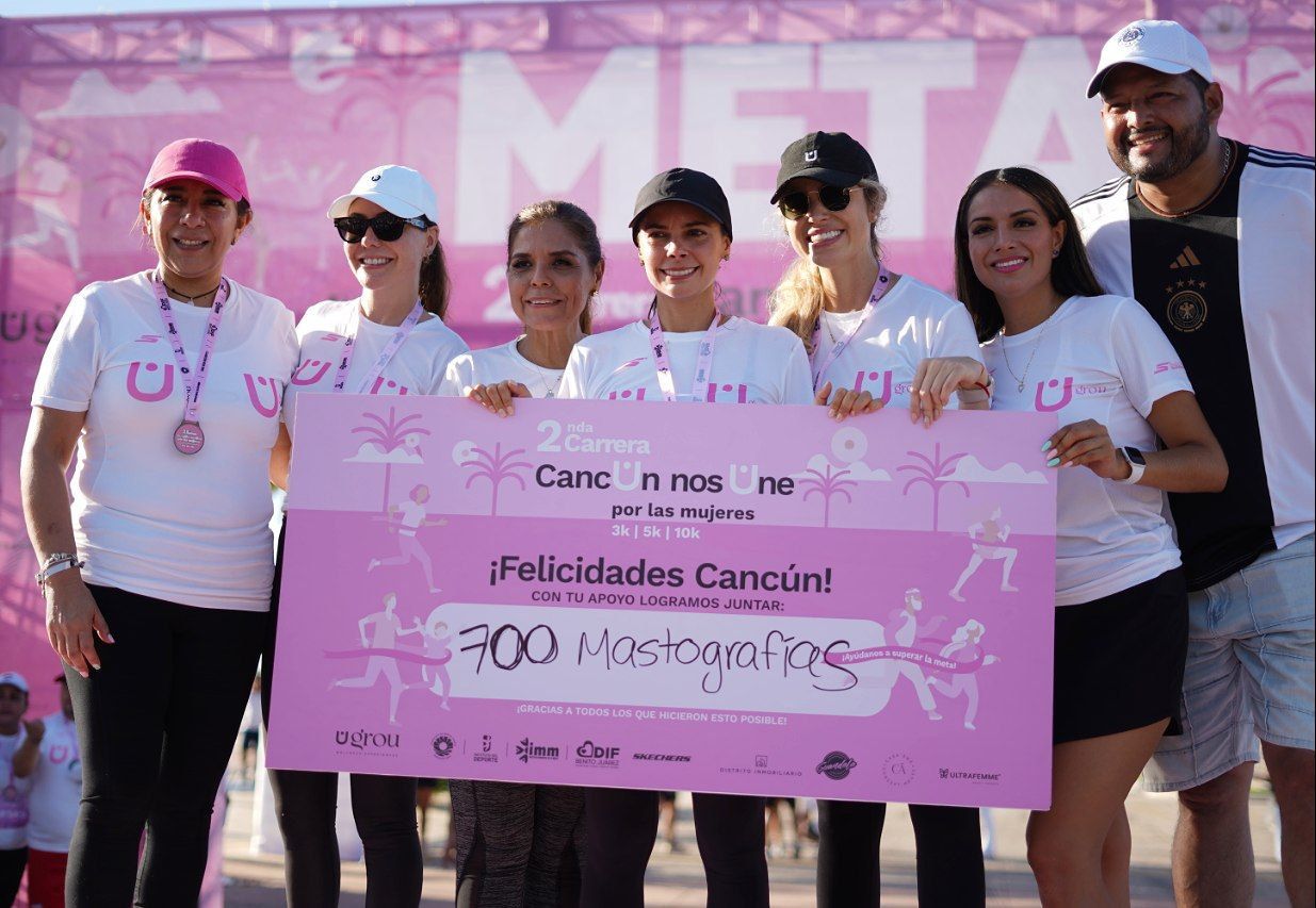 Luego de que todos los cancunenses y visitantes cruzaran la línea de meta, Ana Paty Peralta y representantes de la empresa Ug´rou, con gran emoción dieron a conocer que el número total de mastografías recaudadas en esta carrera fue de 860, superando la proyección estimada de 700.