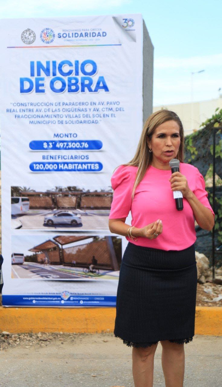 Playa del Carmen, Solidaridad, 6 de junio del 2023.- A fin de dignificar la vida de las familias, la presidenta Lili Campos presenció en Villas del Sol el inicio de obra del paradero del transporte público, el cual será el más grande de Solidaridad. Adelantó que la próxima semana iniciará la construcción de la Unidad deportiva en ese mismo fraccionamiento, banquetas en la avenida Loros, pasos peatonales y el programa de “Pinta tu Fachada”.