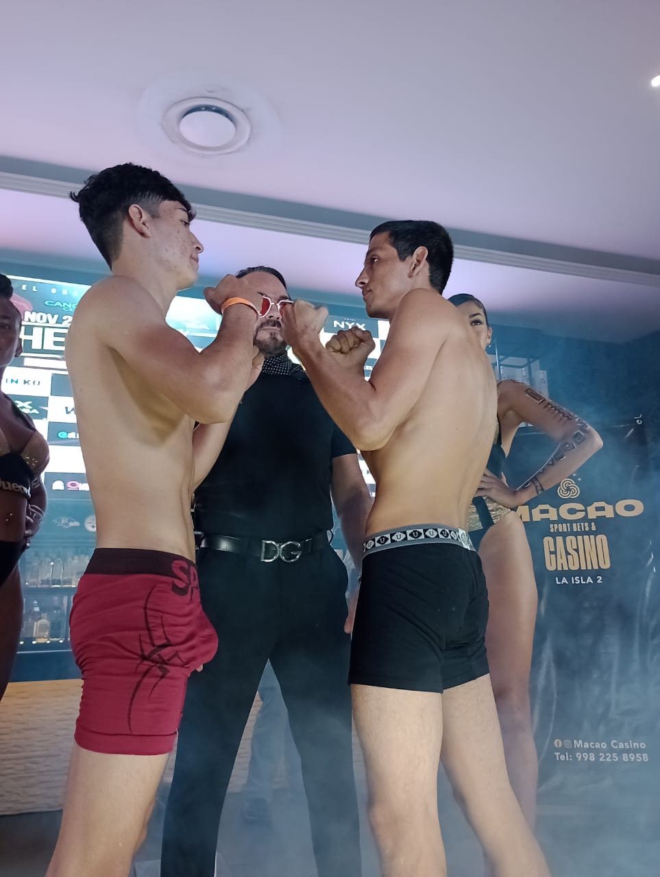 Listos los protagonistas de la gala boxística “He is Back”, tras cumplir el protocolo de peso en el Casino Macao.