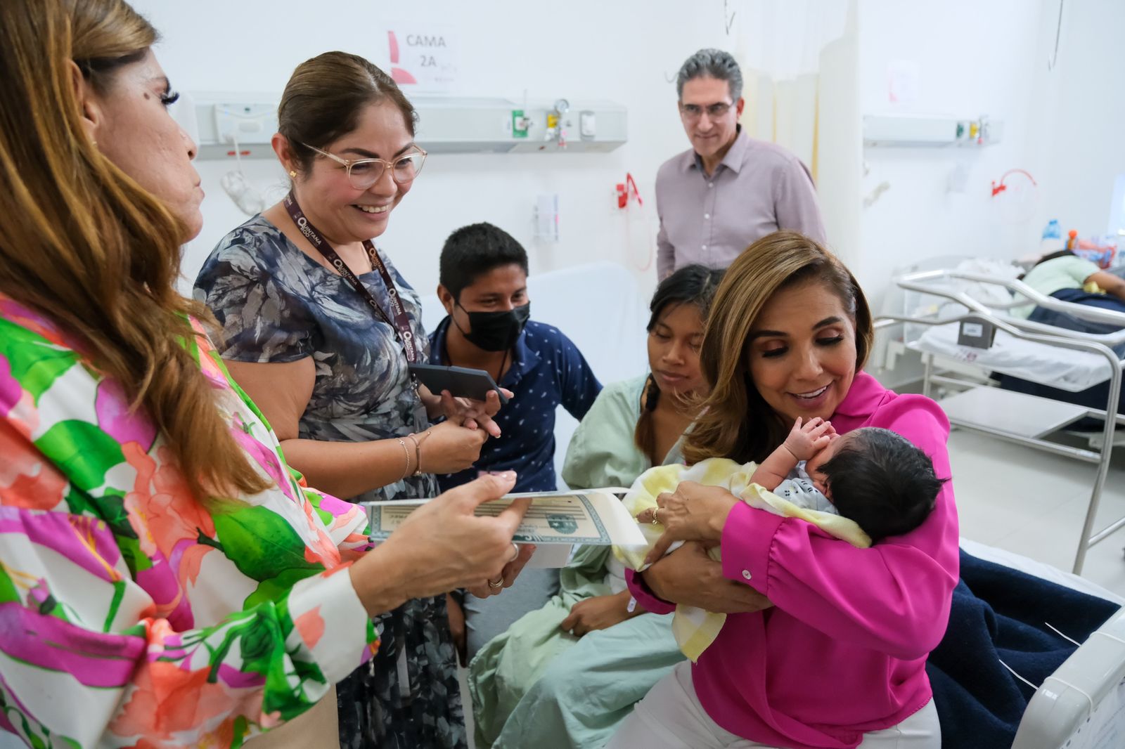 Cancún.- En ocasión del Día de la Madre, la gobernadora Mara Lezama Espinosa recorrió el área de obstetricia del hospital general “Jesús Kumate Rodríguez” para saludar y entregar actas de nacimiento a mamás de recién nacidos entre los días 8 y 9 de mayo.