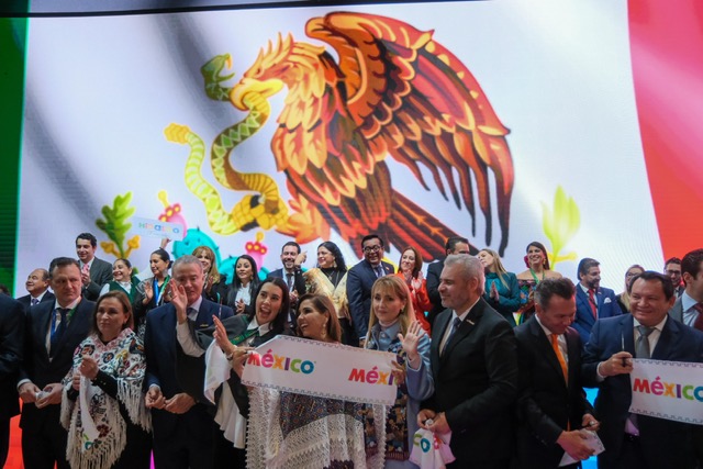 En un ambiente festivo, autoridades de la FITUR, del Gobierno de México, expositores y asistentes recorrieron este pabellón que estará abierto al público desde hoy hasta el 26 de enero en Madrid, España.