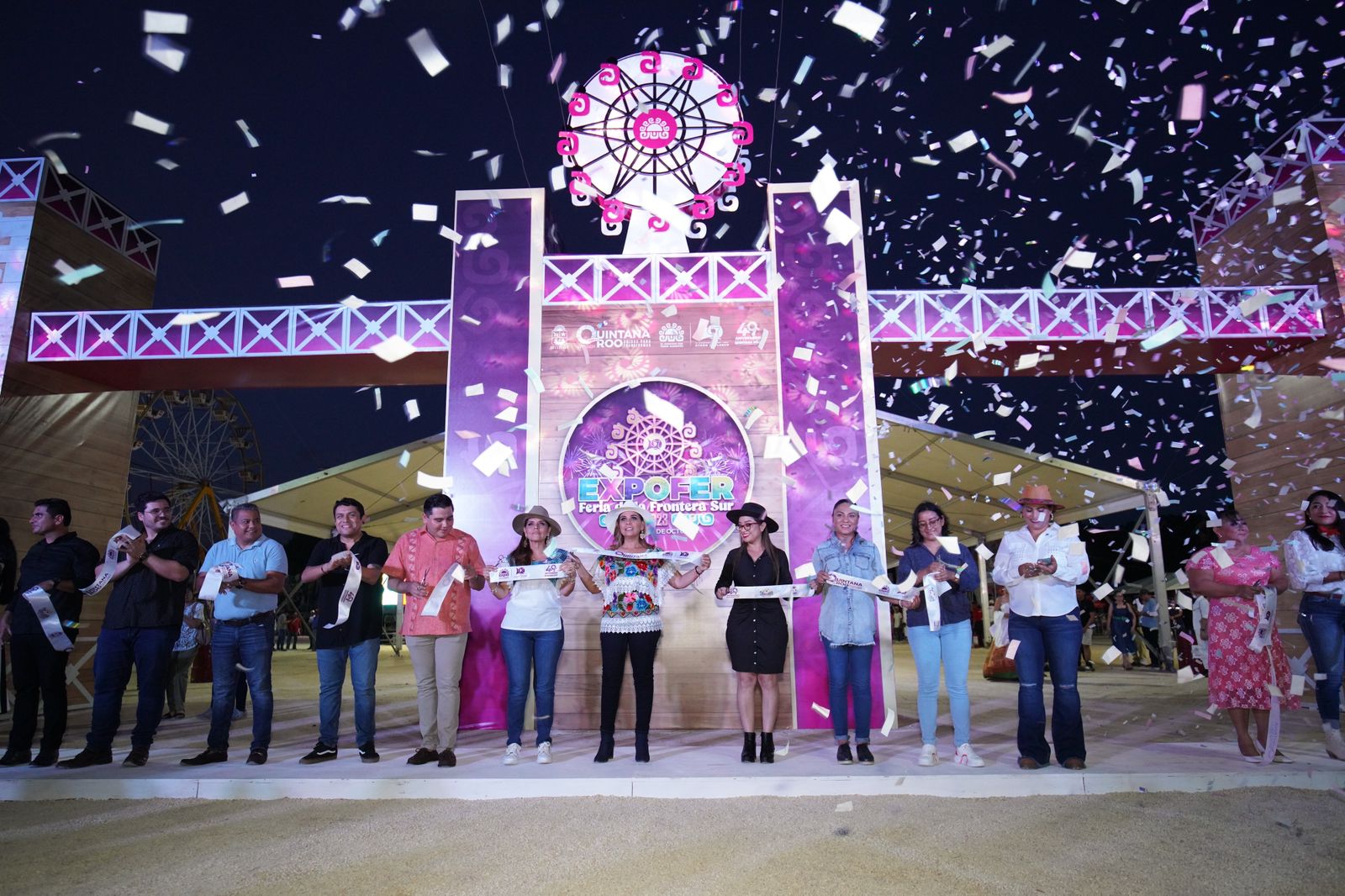 Rodeadas de las y los chetumaleños, así como invitados y visitantes, Mara Lezama y Yensunni Martínez cortaron el listón inaugural de la EXPOFER, después de tres años de ausencia por la emergencia sanitaria ocasionada por el covid-19.