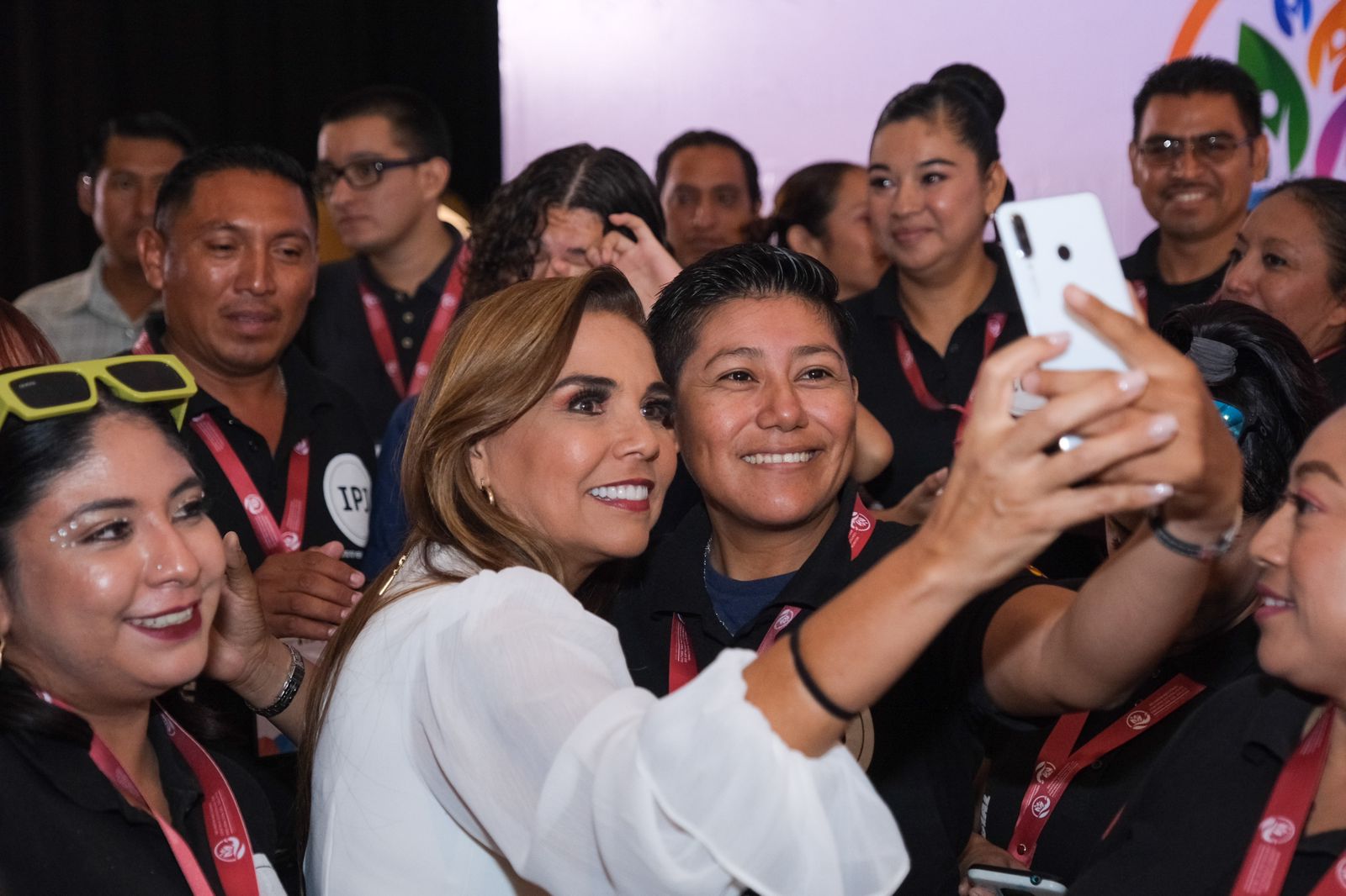 La Gobernadora estuvo acompañada Valentina Arizona Escudero, alumna del Instituto Benavente; Rita Alejandra Navarro Sunza, integrante de la Red de Mujeres Constructoras de Paz; Verónica Lezama Espinosa, presidenta honoraria del DIF Quintana Roo; Cristina Torres Gómez, secretaria de Gobierno; diputado Renán Sánchez Tajonar, presidente de la Junta de Gobierno y Coordinación Política del Congreso del Estado; el magistrado Heyden Cebada Rivas, presidente del Tribunal Superior de Justicia; y el Capitán de Navío Julio César Gómez Torres, secretario de Seguridad Ciudadana, entre otros.