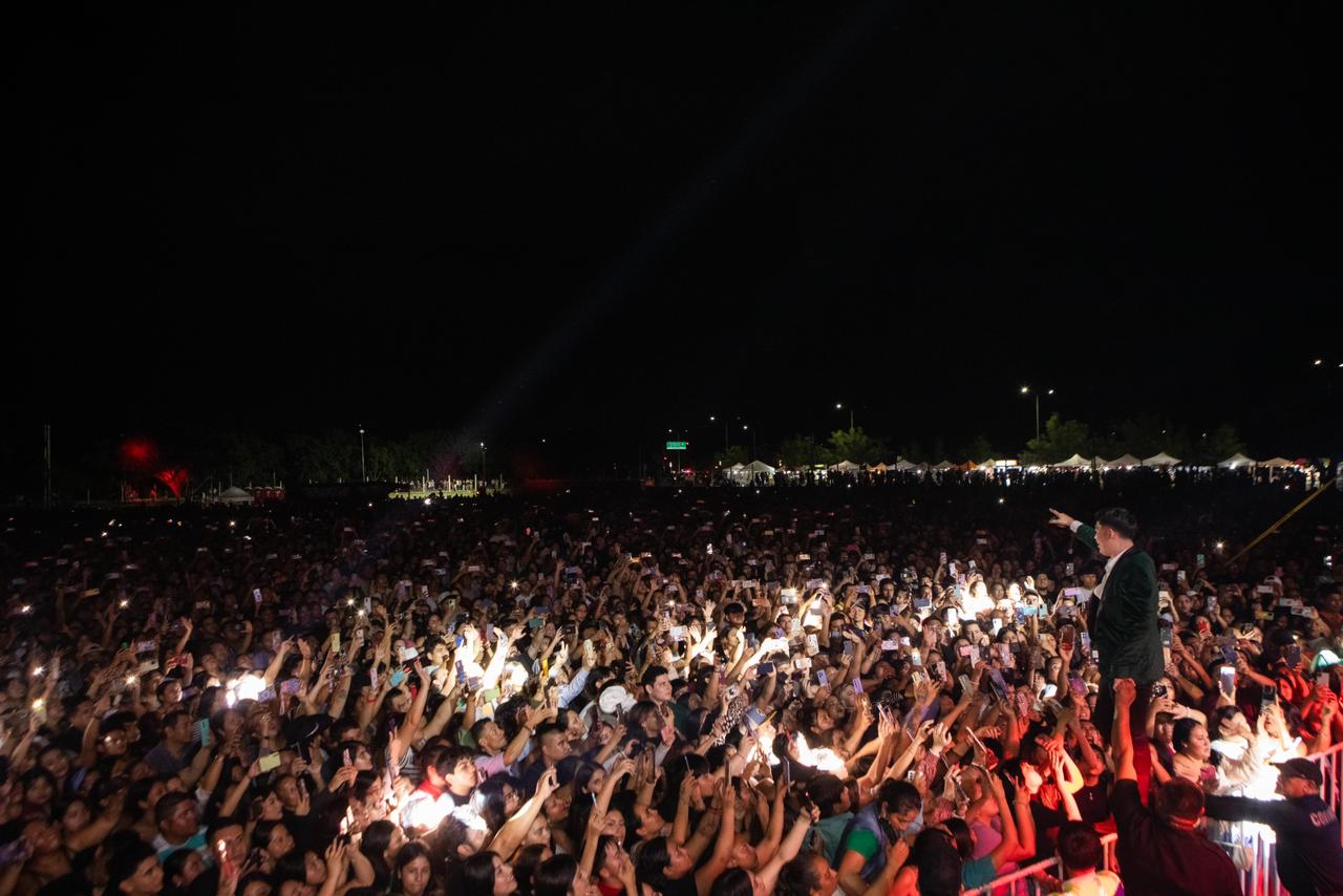 Playa del Carmen, Quintana Roo, 30 de diciembre de 2024. – Más de 25 mil personas se congregaron esta noche en el recinto ferial de Playa del Carmen, para disfrutar de los éxitos de la Arrolladora Banda El Limón, de René Camacho, como parte de las celebraciones de la “Navidad Mágica” que organizó el gobierno de Solidaridad para los habitantes del municipio y los turistas.