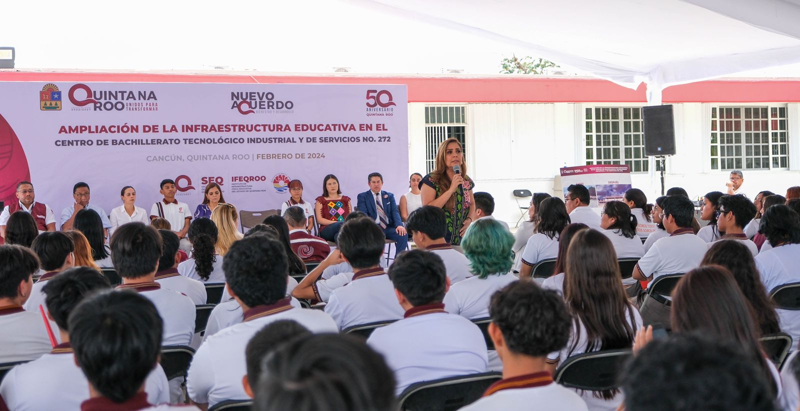 La gobernadora Mara Lezama explicó que esta ampliación incrementa la capacidad, de casi 20%, para la formación de más jóvenes en bachillerato técnico industrial. Con las nuevas aulas y nuevo mobiliario el CBTIS 272 podrá recibir a 200 estudiantes más.