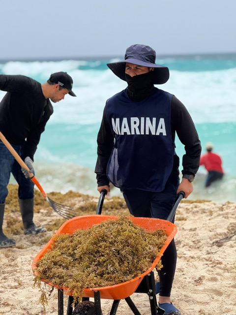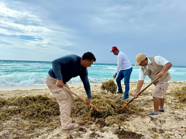 De acuerdo con el reporte de este jueves, solo tres playas registraron un arribo considerable de sargazo, Chac Mool, Ballenas y Marlín, y en estas dos últimas ya se encuentra controlado el arribo. Además, se cuenta con una celda especial para el destino final de esta microalga, con todos las características para evitar la contaminación del suelo.