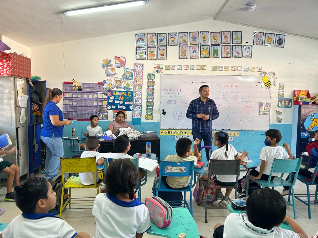 Basurto Campos resaltó que la entrega directa permite al gabinete de la administración municipal saludar a los niños, estar pendientes de los planteles educativos, así como tener contacto con los directores, instrucción de la presidenta Lili Campos de tener un gobierno cercano a la gente.