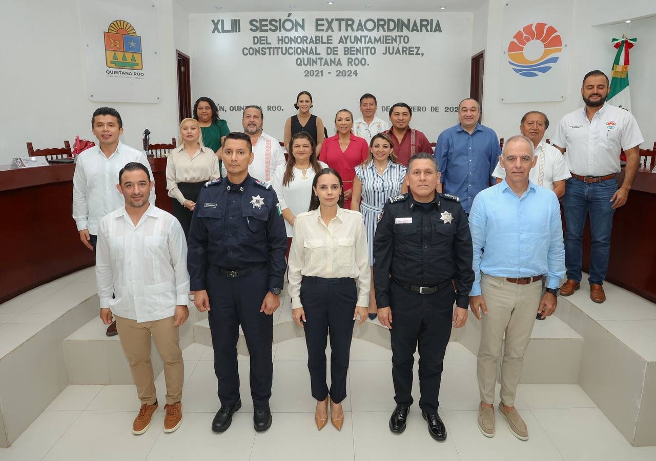 Cancún, Q. R., a 02 de febrero de 2024.- Con la aprobación unánime de los integrantes del Cabildo, el gobierno de Benito Juárez nombró al Capitán de Navío Carlos Ernesto D´amiano Sumoano como Secretario Municipal de Seguridad Ciudadana y Tránsito, bajo el objetivo de fortalecer las acciones y el trabajo coordinado en la construcción de la paz, la prevención del delito y atender los orígenes de las violencias.