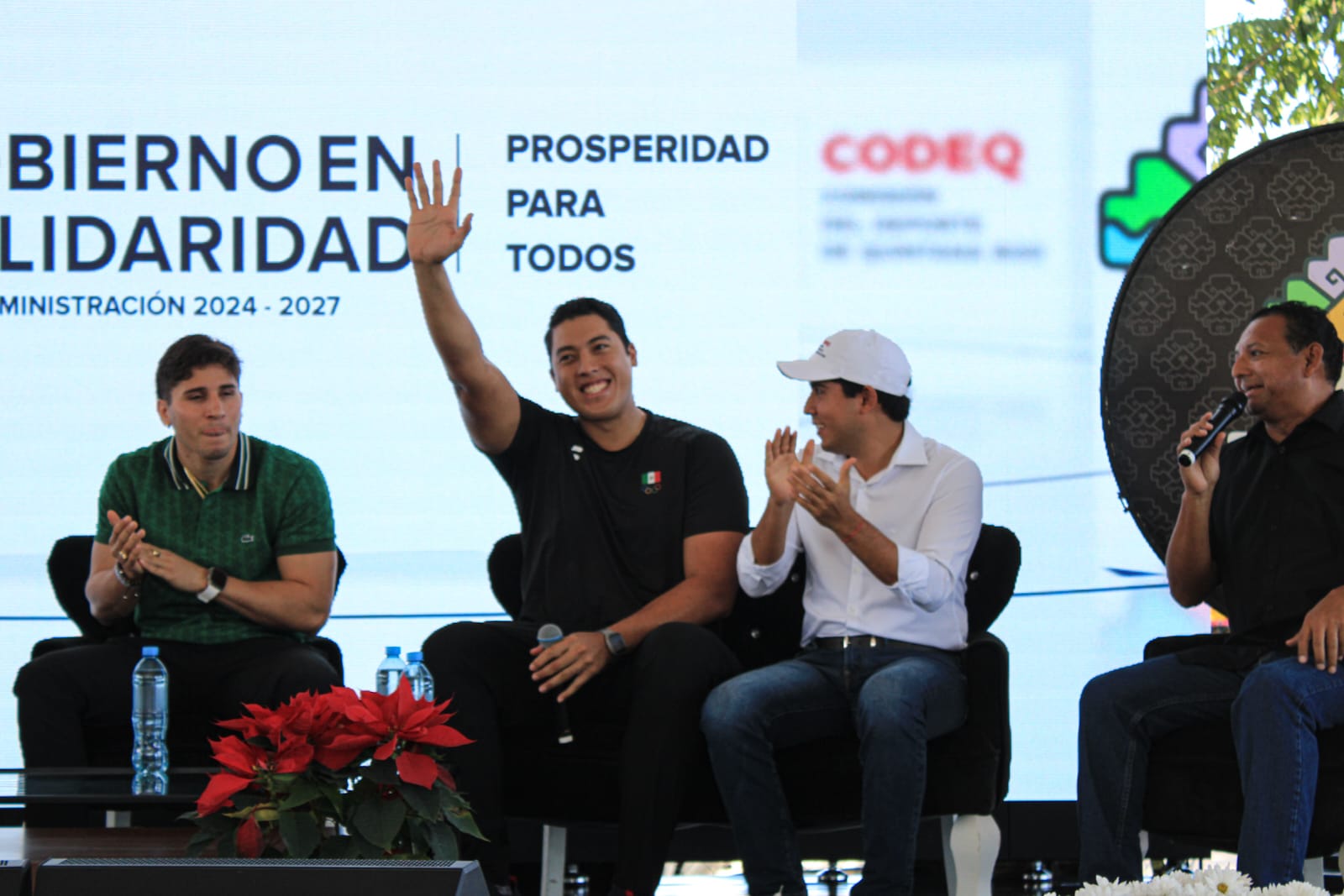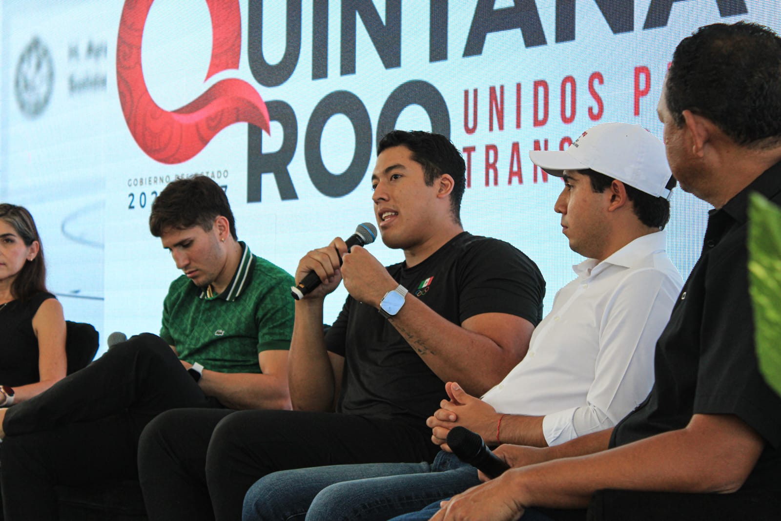 En representación de la Gobernadora del Estado, Lic. Mara Lezama, estuvo el presidente de la Comisión del Deporte de Quintana Roo, Lic. Jacobo Arzate Hop, quien acompañó al director general del Instituto del Deporte del Municipio de Solidaridad, anfitrión del evento y al alcalde de Puerto Aventuras, quienes acompañaron a los deportistas olímpicos en el escenario y compartieron anécdotas y consejos a los asistentes.