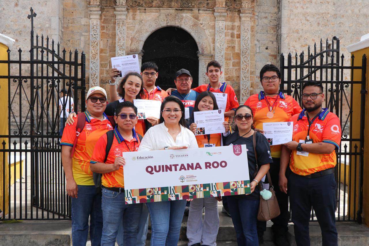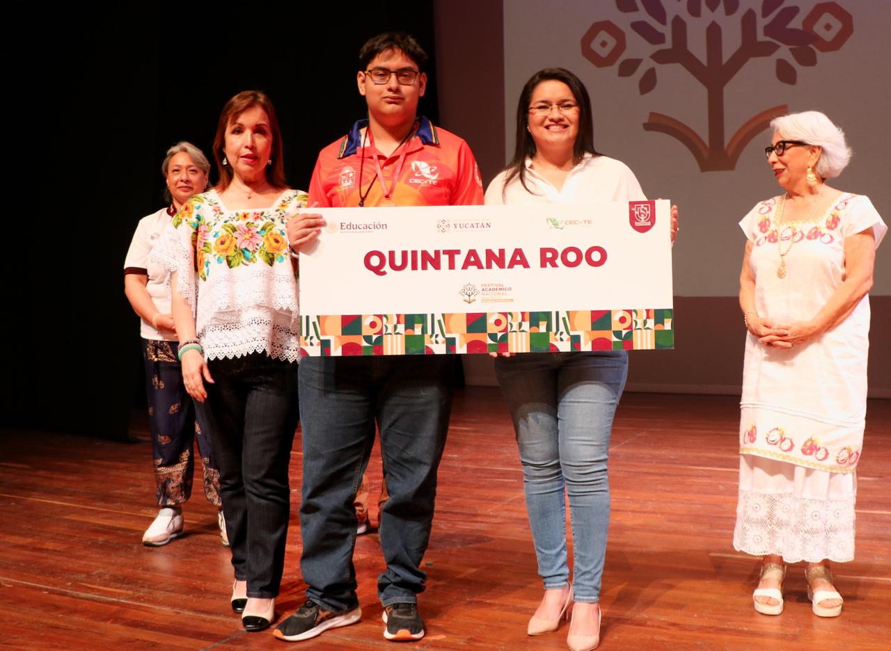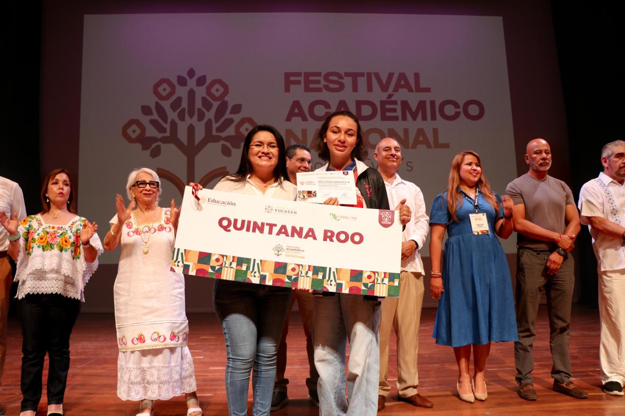 Valladolid, Yucatán.- Con gran ímpetu, el Colegio de Estudios Científicos y Tecnológicos del Estado de Quintana Roo (CECyTE Quintana Roo) participó junto a otros 25 estados en el Festival Académico Nacional 2025, celebrado en Valladolid, Yucatán, donde las y los estudiantes quintanarroenses lograron obtener cuatro segundos lugares y un tercer lugar en las ramas de Ciencias Experimentales y Tecnología, Humanidades, Inglés, Comunicación y Cultura Digital.