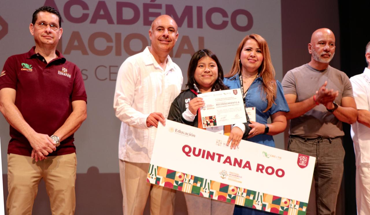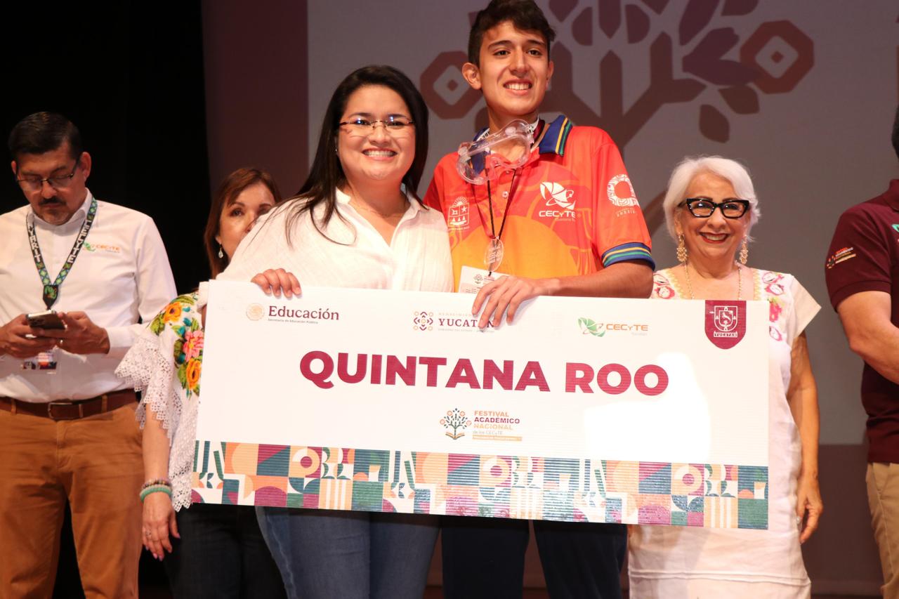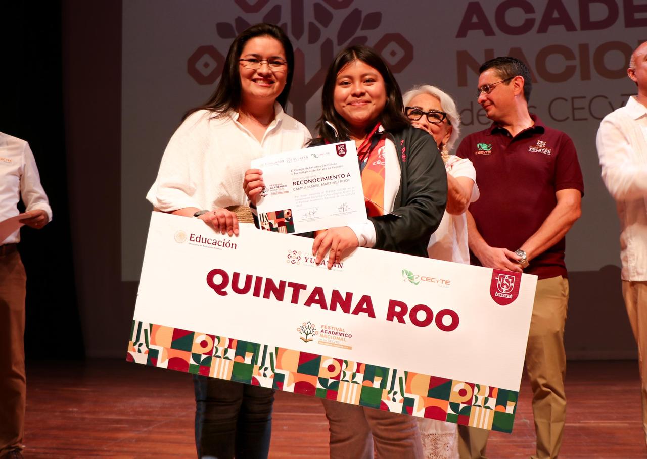 Valladolid, Yucatán.- Con gran ímpetu, el Colegio de Estudios Científicos y Tecnológicos del Estado de Quintana Roo (CECyTE Quintana Roo) participó junto a otros 25 estados en el Festival Académico Nacional 2025, celebrado en Valladolid, Yucatán, donde las y los estudiantes quintanarroenses lograron obtener cuatro segundos lugares y un tercer lugar en las ramas de Ciencias Experimentales y Tecnología, Humanidades, Inglés, Comunicación y Cultura Digital.