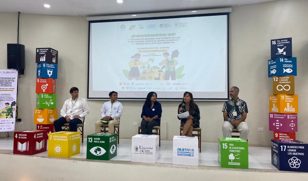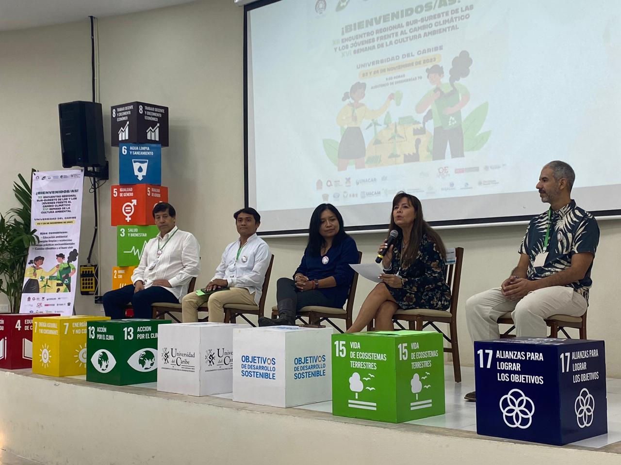 Cancún. – Con el objetivo de intercambiar experiencias sobre temas de cambio climático, políticas públicas, energías renovables y educación con jóvenes universitarios; la secretaria de Ecología y Medio Ambiente, Huguette Hernández Gómez estuvo presente en el XII Encuentro Regional Sur- Sureste de las y los Jóvenes Frente al Cambio Climático.
