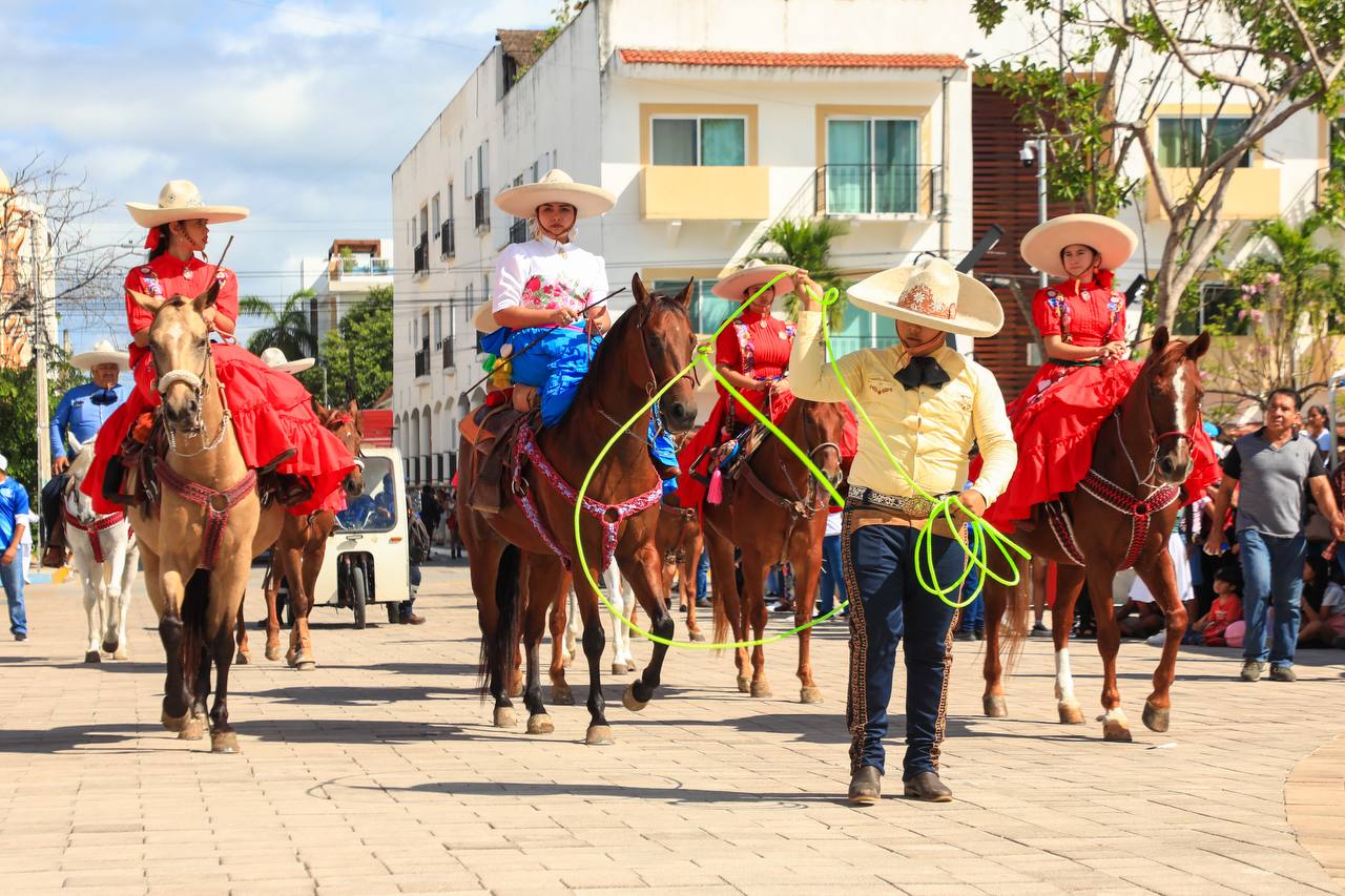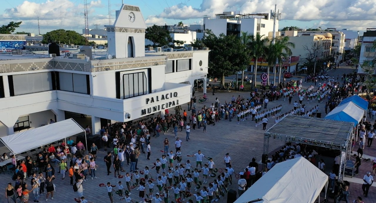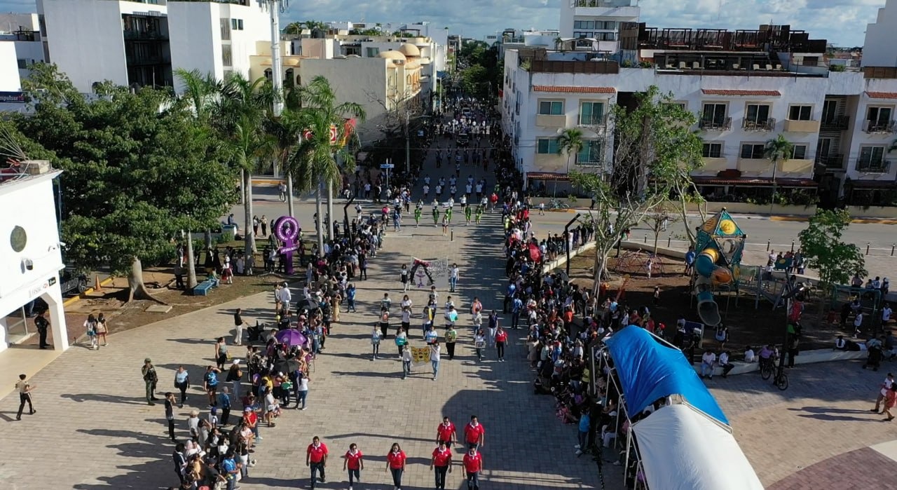 Playa del Carmen, Solidaridad, 20 de noviembre de 2023.- Con la participación de más de 8 mil 500 personas se realizó el desfile cívico-deportivo por el CXIII Aniversario de la Revolución Mexicana, mismo que fue presidido frente al palacio municipal del centro, por la presidenta Lili Campos, acompañada por representantes del Ejercito Mexicano, Secretaría de Marina, funcionaros municipales y el cabildo infantil.