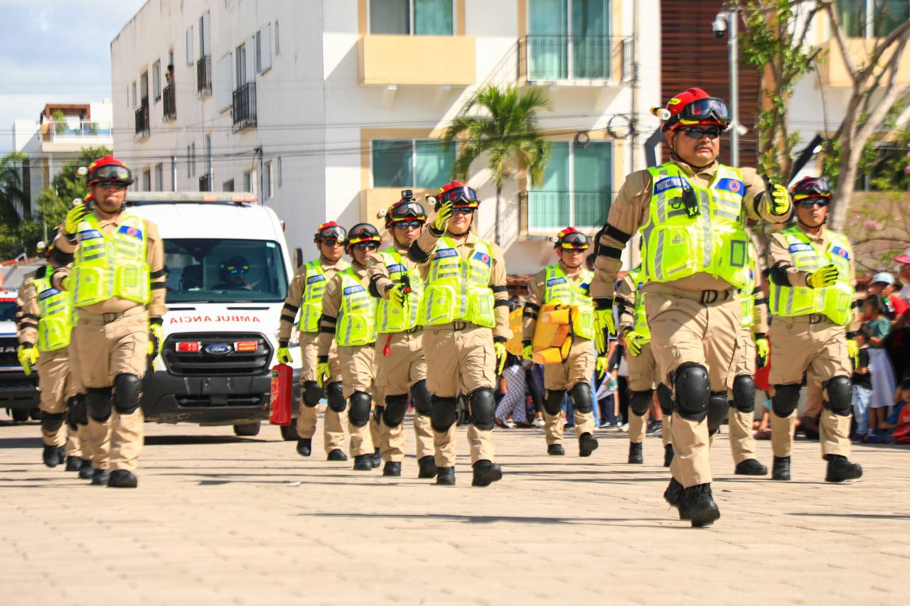 Esta expresión vibrante de unidad y patriotismo inició sobre la Avenida 34 integrada por 60 contingentes, concluyendo cuatro horas después. Estuvo encabezado por Vigilantes Escolares, pertenecientes a la Secretaría de Seguridad Pública. Posteriormente entusiasta alumnos de los tres niveles educativos, personal de secretarías del Ayuntamiento, asociaciones civiles y clubes deportivos realizaron bailes y cantos como “La Adelita”, rutinas rítmicas como “bastoneras”, pirámides, incluyendo demostraciones de bandas de guerra, habilidades en deportes, entre otras presentaciones.