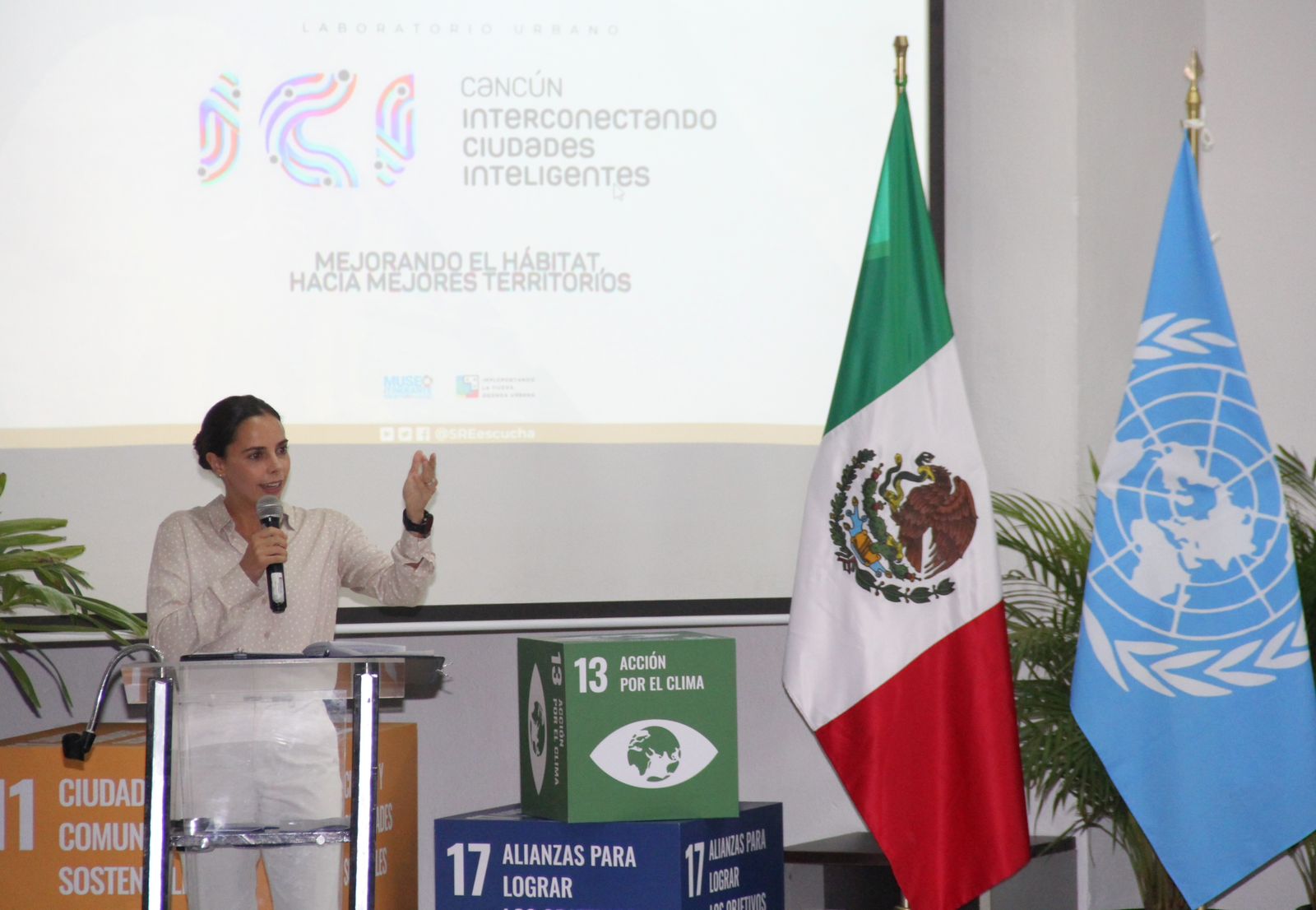 “Hoy el Ayuntamiento de Benito Juárez trabaja alineado a los objetivos de Desarrollo Sostenible de la Agenda 2030 con nuestro Plan de Desarrollo Municipal a través de sus 24 estrategias y 227 líneas de acción”, subrayó la Primera Edil ante los invitados provenientes de México, Venezuela y Brasil, durante el primer día de actividades del evento, organizado en coordinación con coordinado con ONU-Habitat México y la Secretaría de Relaciones Exteriores.