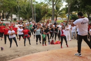 Esta es una de las primeras clases masivas de activación física que se tiene programado y para esta ocasión se realizó teniendo como escenario el “Parque de los Caimanes”, que se ubica frente de la Catedral de Chetumal, y en donde con mucho entusiasmo, se realizaron diversos estilos de baile deportivo, donde además de poner buen ambiente se ejercitaron.