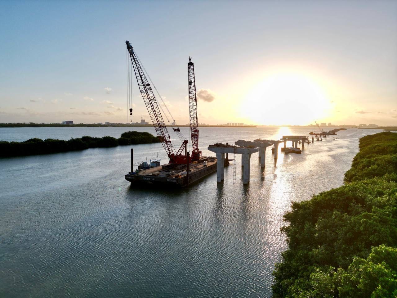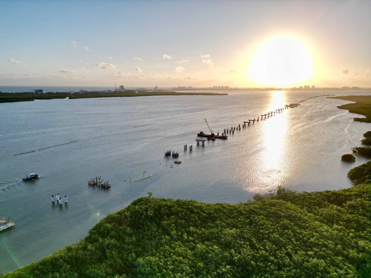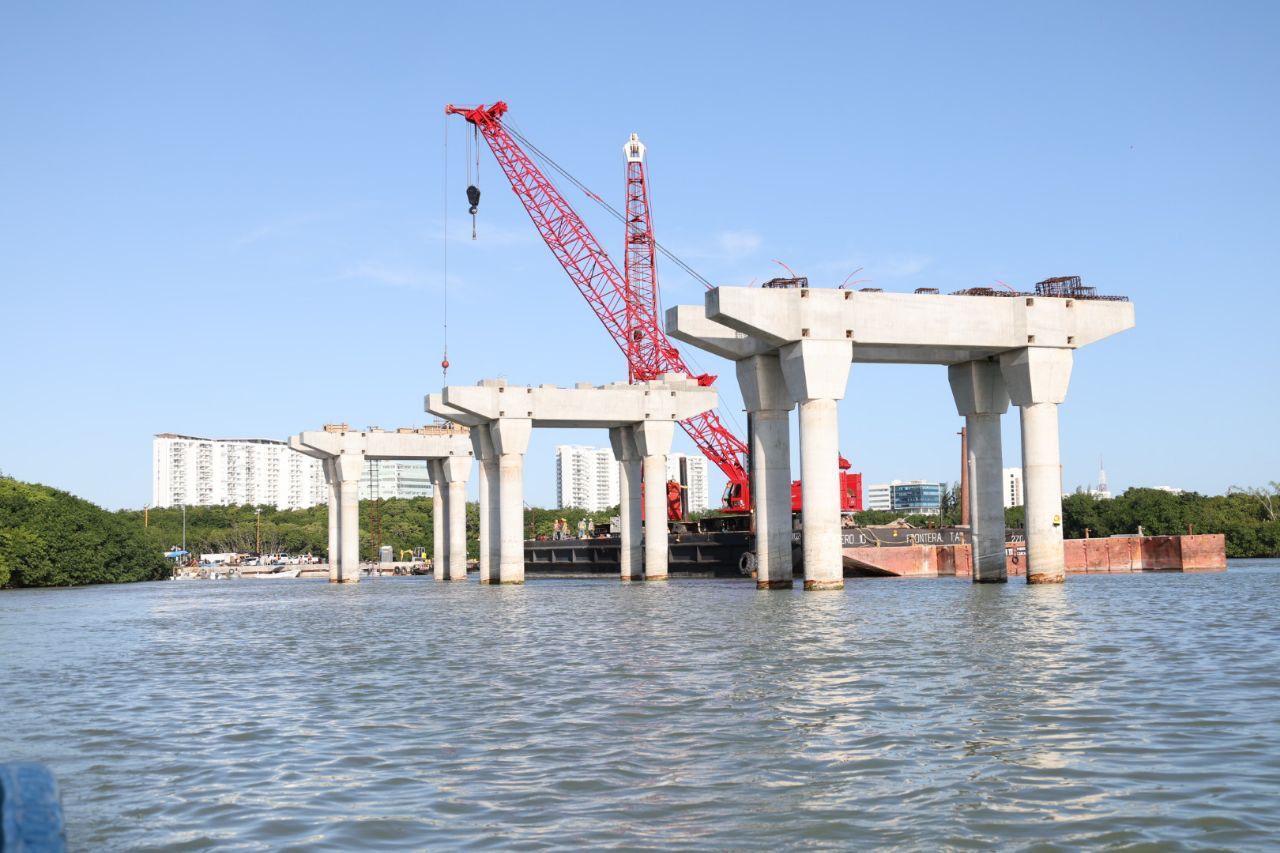 Como parte de la supervisión, la Primera Autoridad Municipal y los integrantes del cuerpo cabildar además de la inspección en lancha por el Sistema Lagunar Nichupté, constaron la labor de la maquinaria con el sistema vanguardista “Top Down”, que es empleado por segunda ocasión en el continente americano después de haber sido utilizado en Colombia, lo que permite construir las estructuras del puente de arriba para abajo para cuidado del medio ambiente.