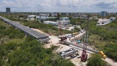 La gobernadora de Quintana Roo supervisó los trabajos de ésta que es una de las obras que se realizan en Cancún con las inversiones históricas del Gobierno de México, la cual genera cientos de empleos para hombres y mujeres que trabajan 24/7 para hacer posible su entrega en abril de 2024. El puente será de 8.8 kilómetros de longitud.